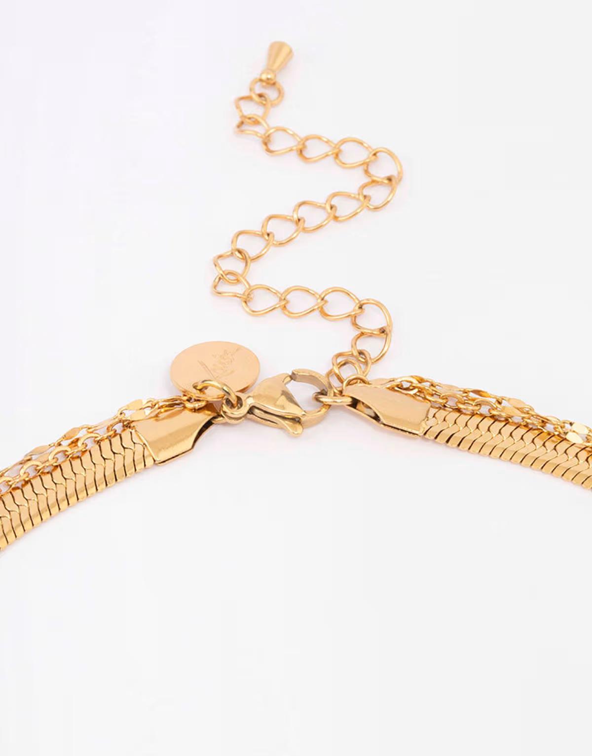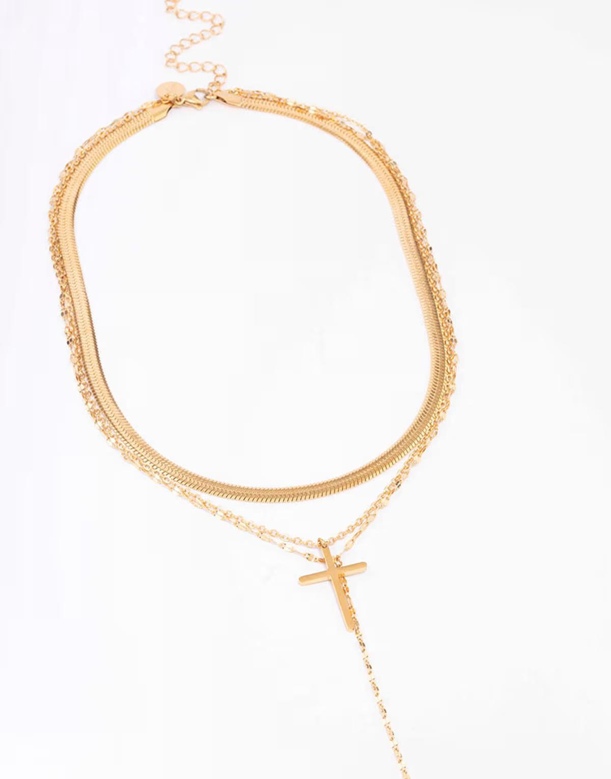 Lovisa Waterproof gold plated stainless steel multi chain cross layered necklace in gold