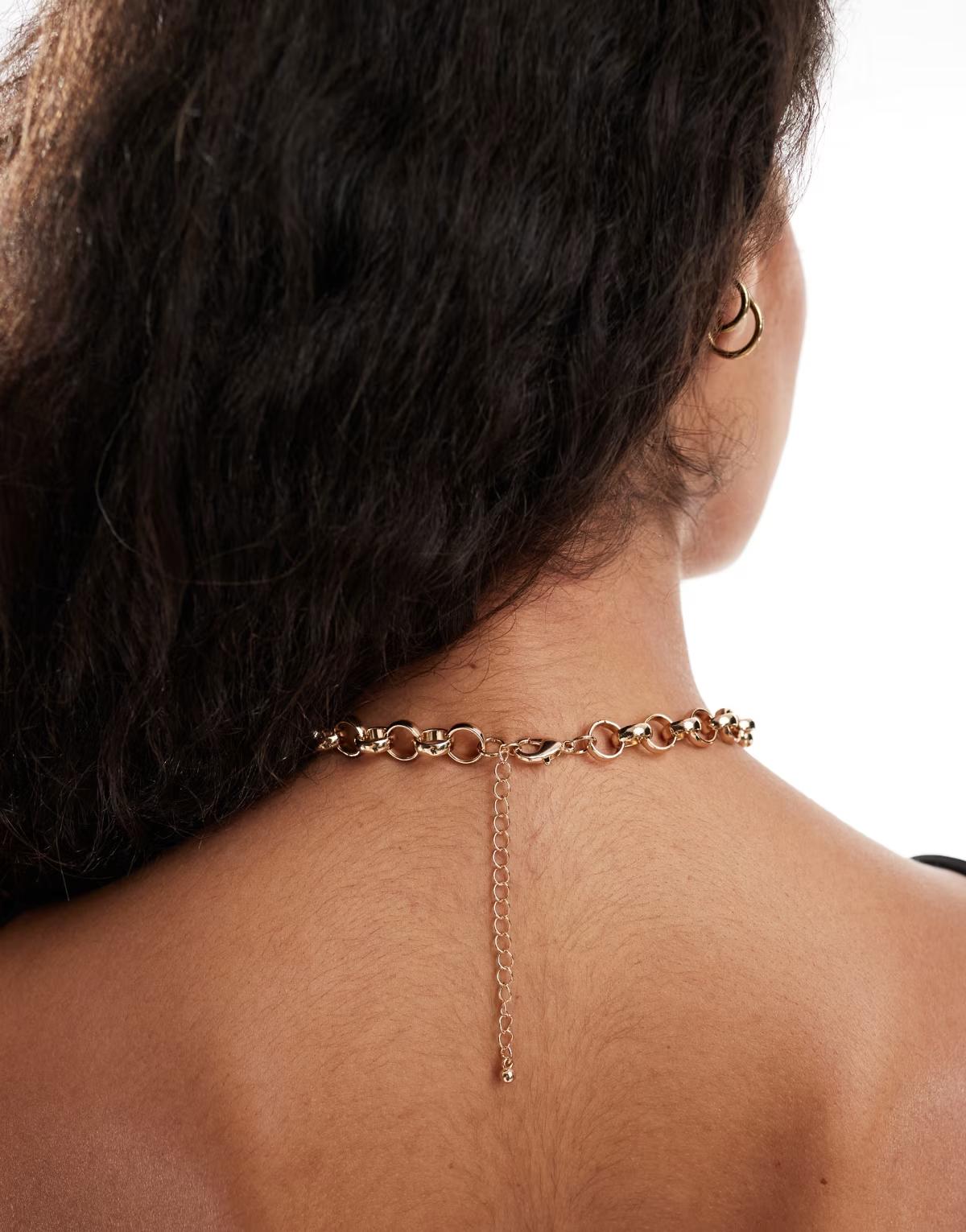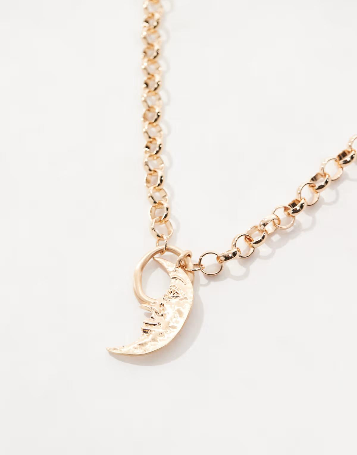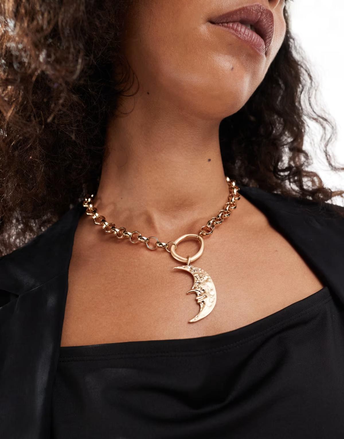 ASOS DESIGN necklace with chunky chain and moon charm pendant in brushed gold tone