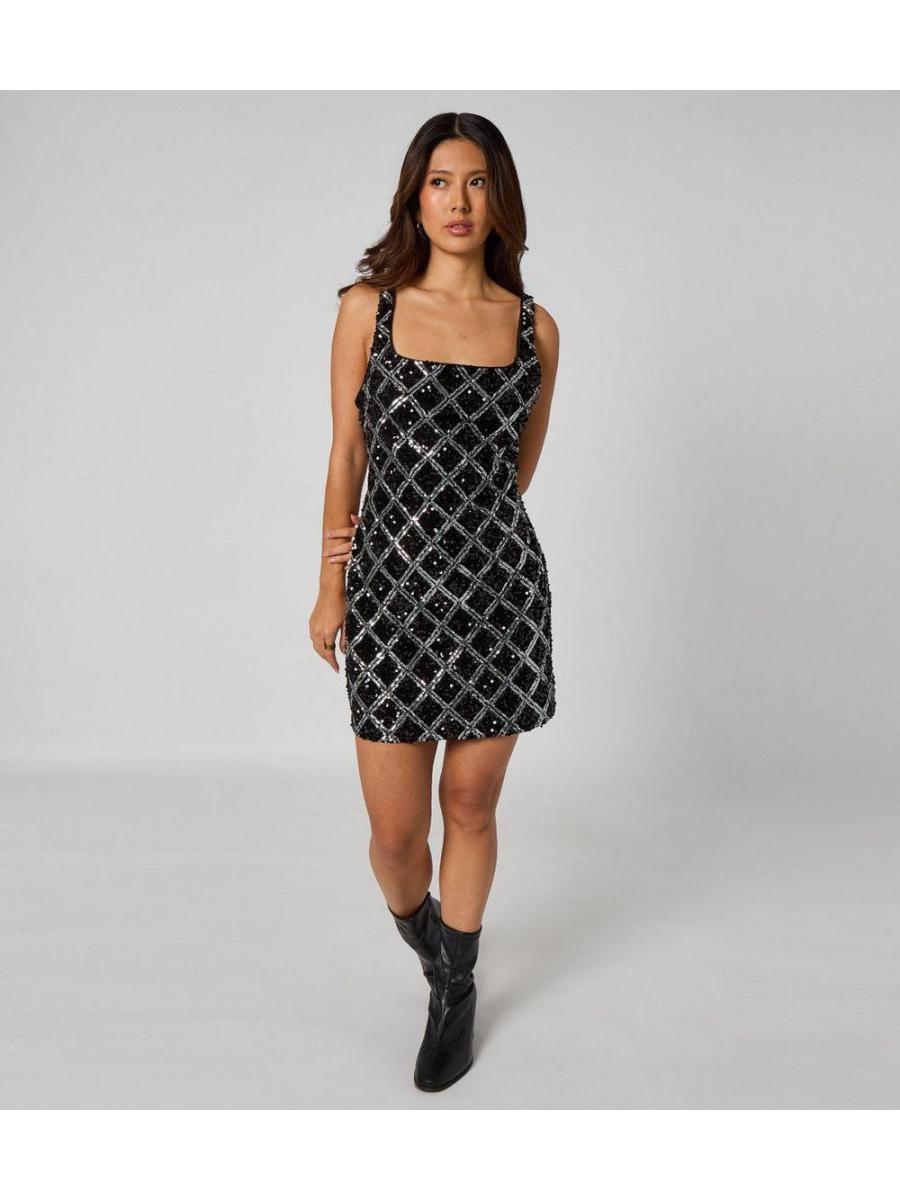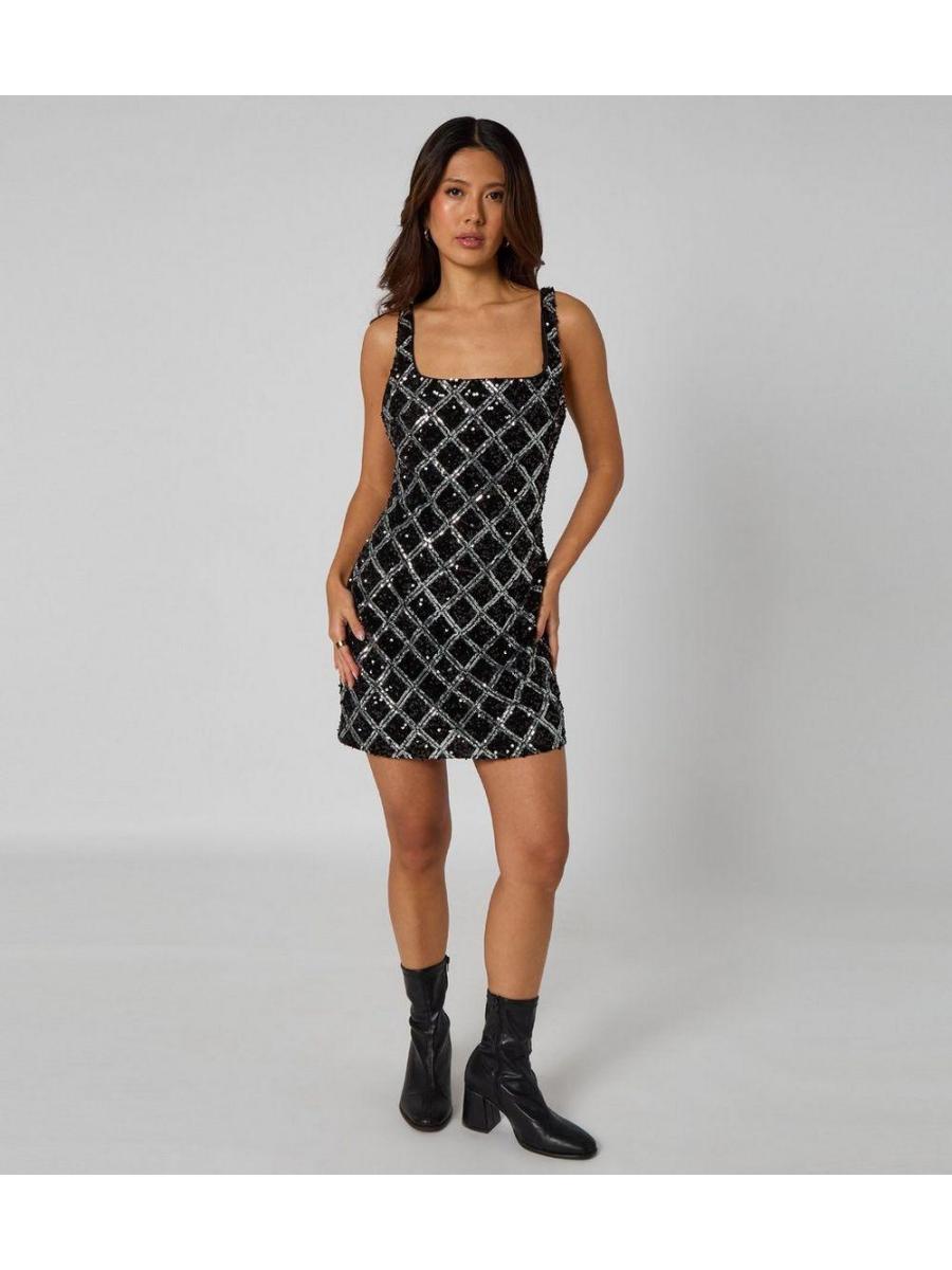 Urban Bliss Black Diamond Patten Sequin Mini Dress
