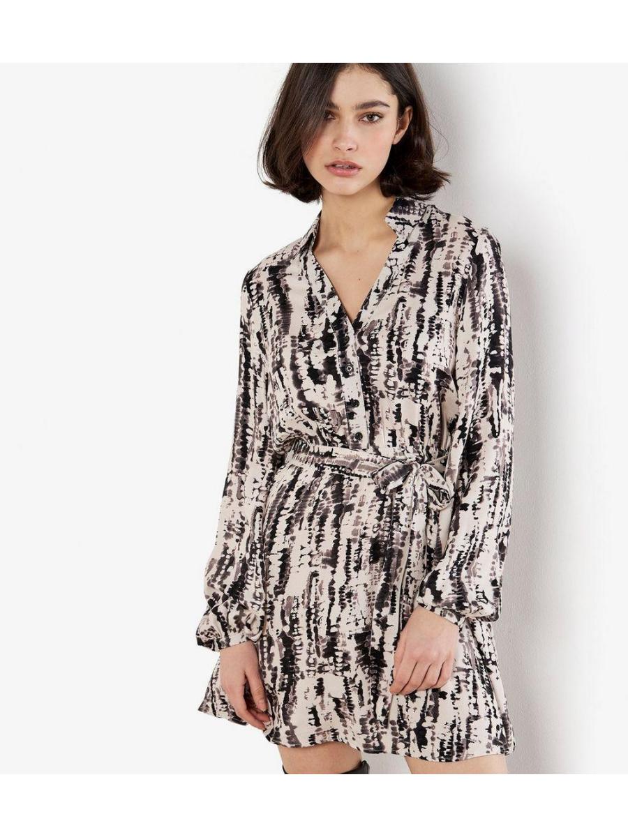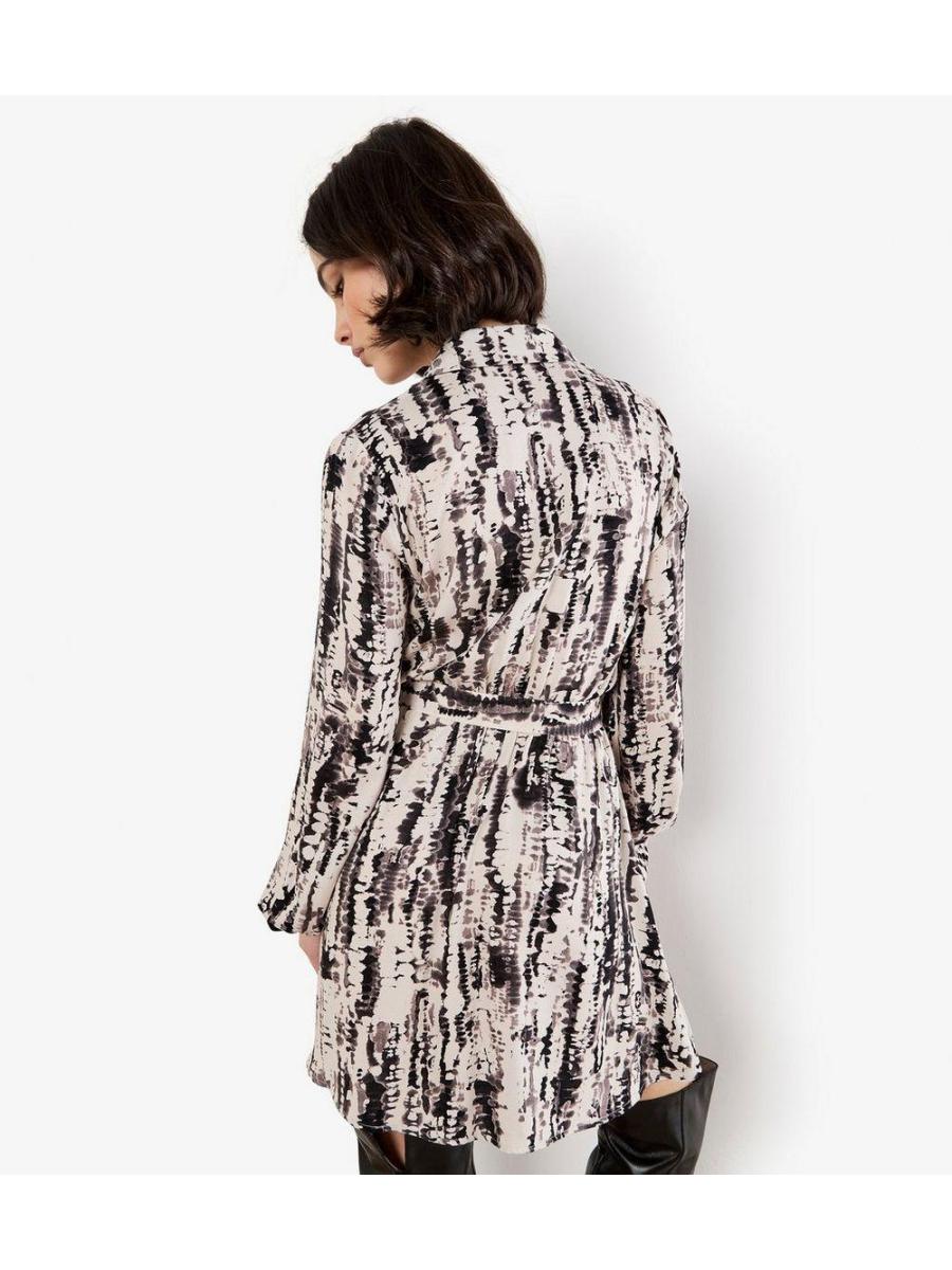 Apricot Stone Tie Dye Print Mini Shirt Dress