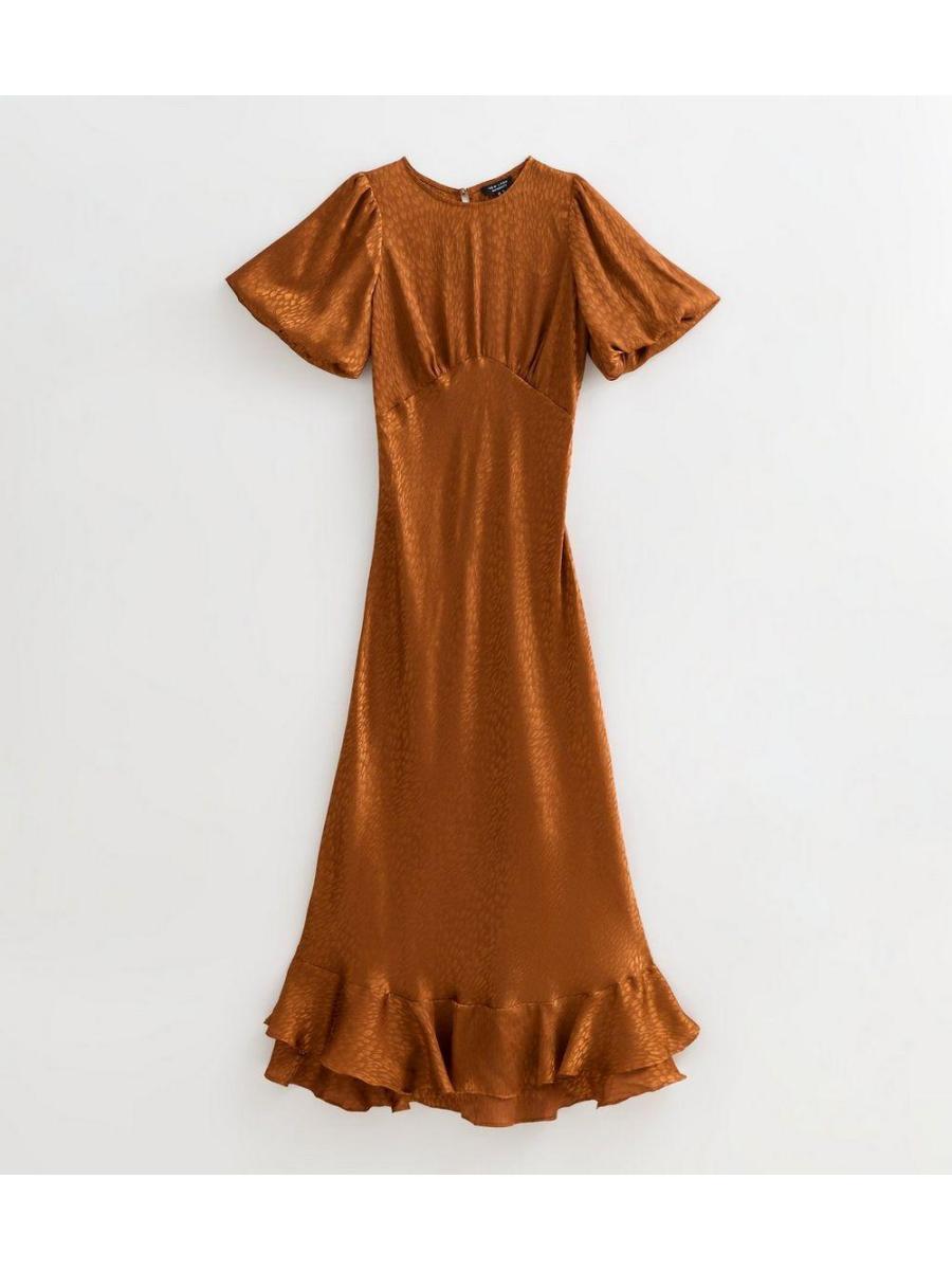 Maternity Orange Feather Jacquard Satin Midi Dress
