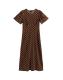 Brown Crinkle Texture Spot Print Midi Dress