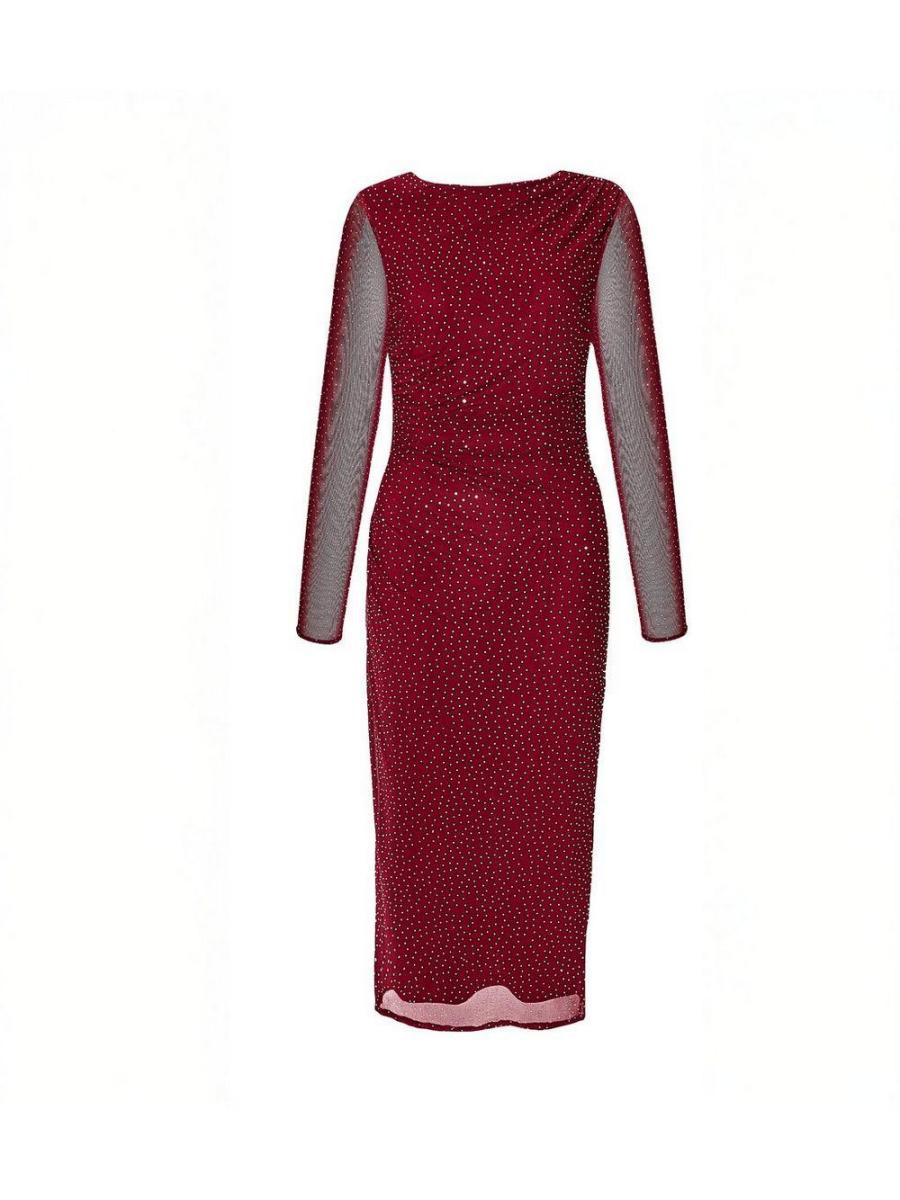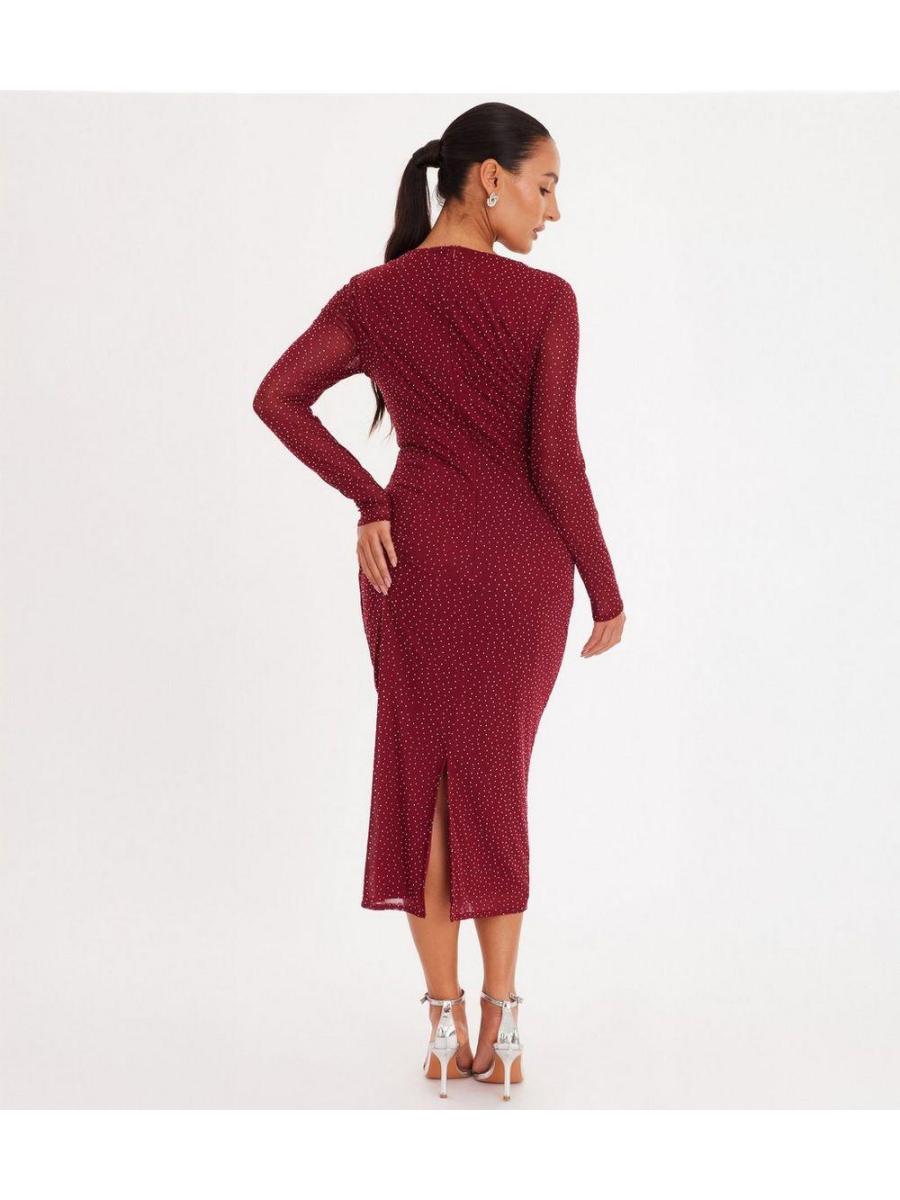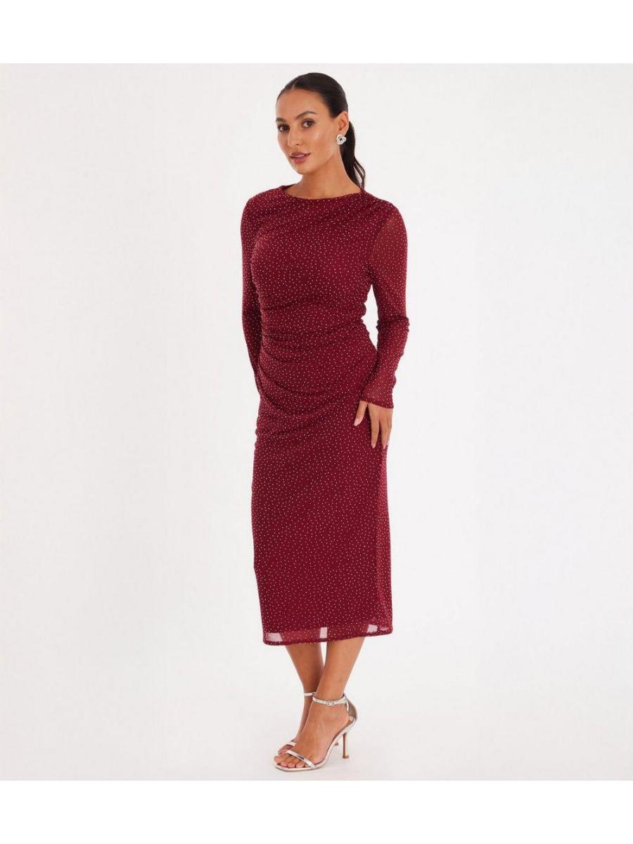 QUIZ Petite Red Rhinestone Midi Dress