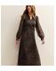 Brown Chiffon Animal Print Ruffled Midi Dress