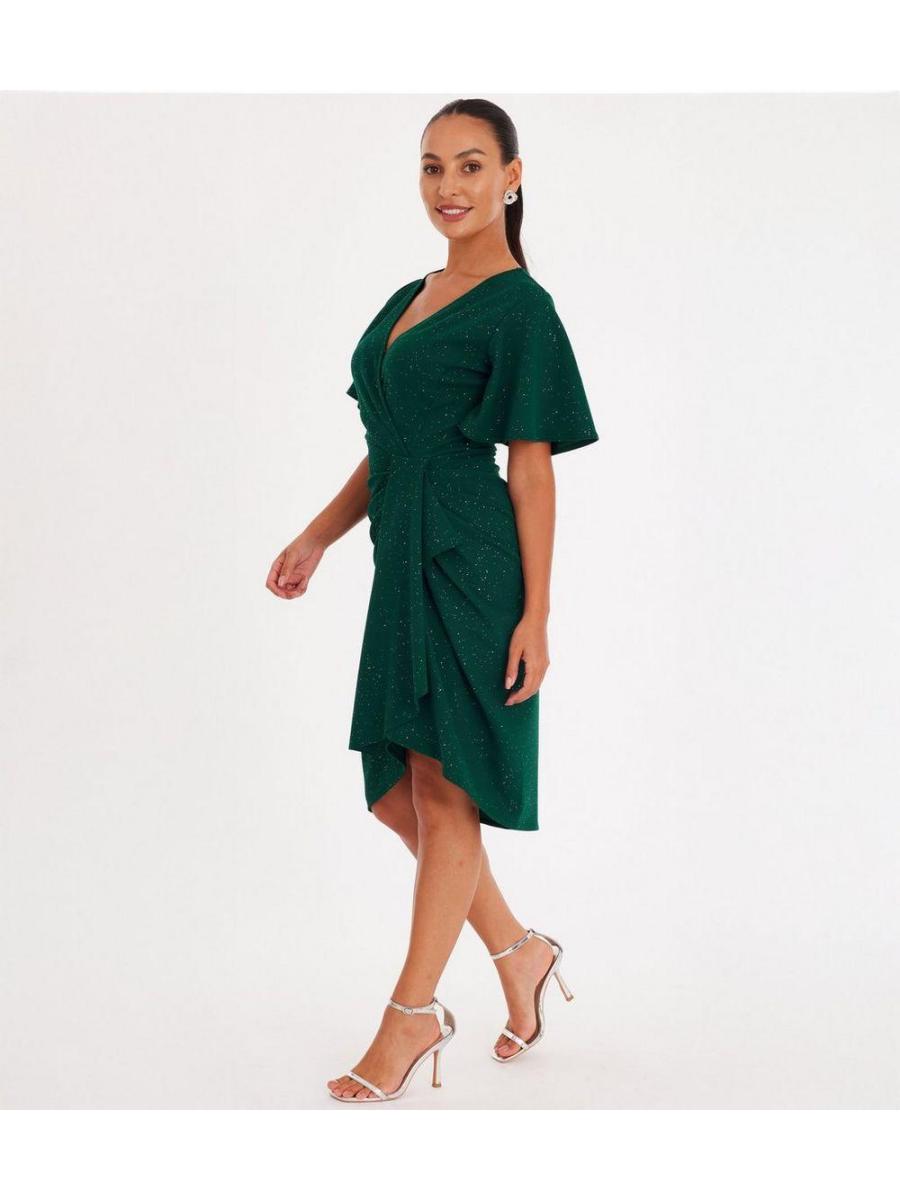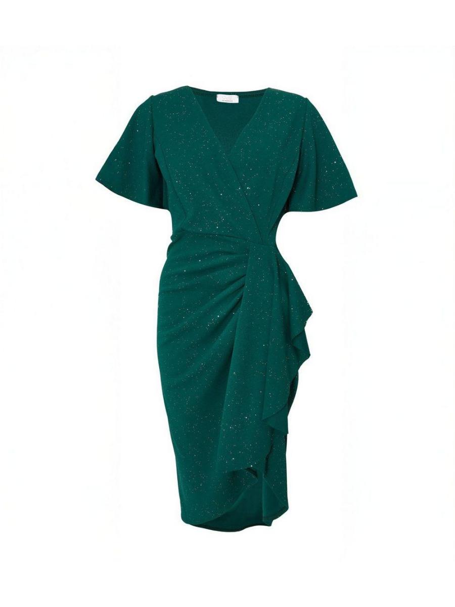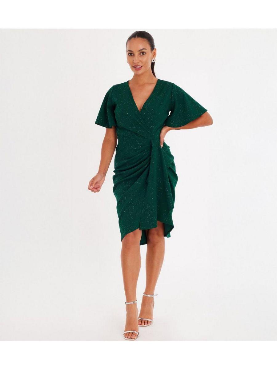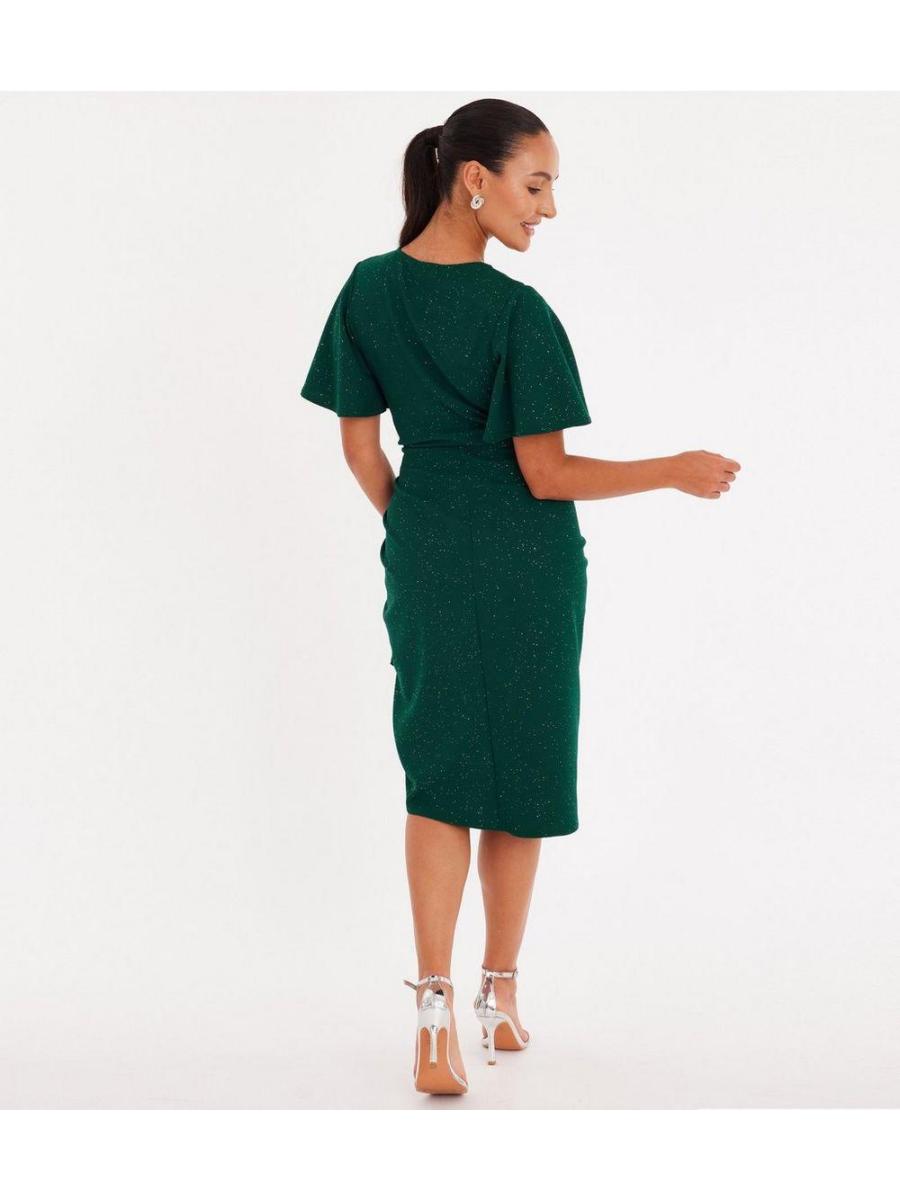 QUIZ Petite Green Glitter Ruched Midi Dress