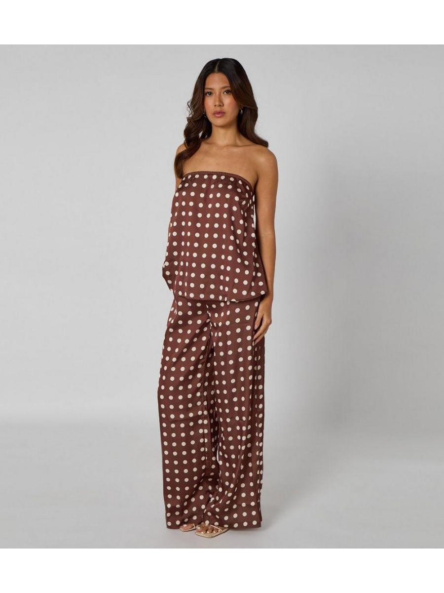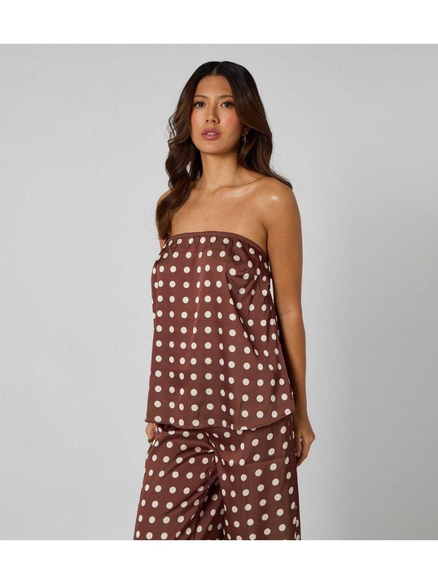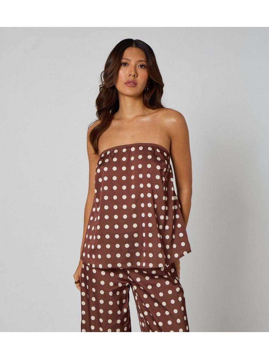 Urban Bliss Mid Brown Satin Polka Dot Bandeau Top