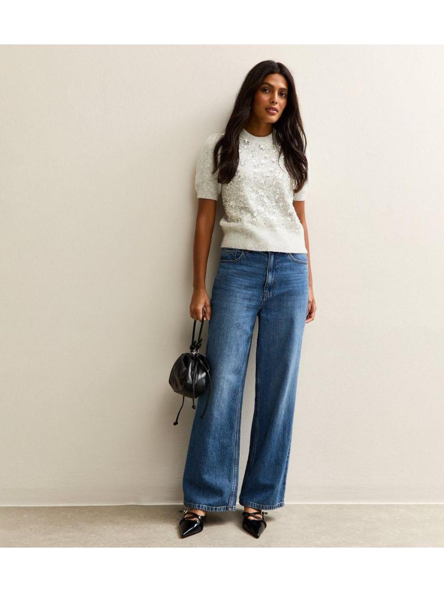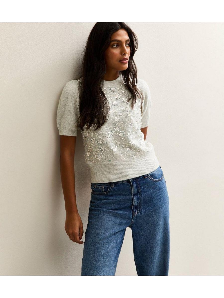 Grey Sequin Embellished Knitted Top