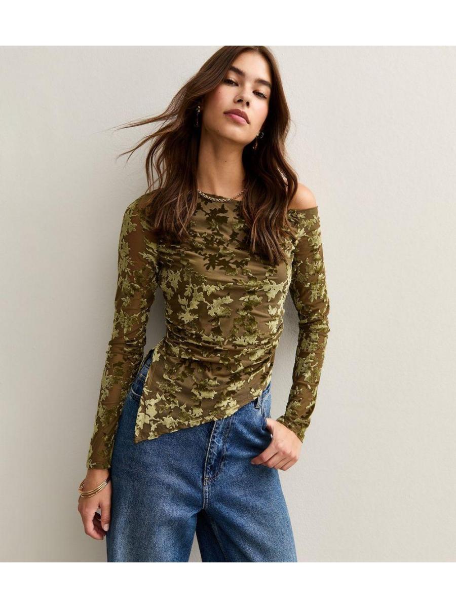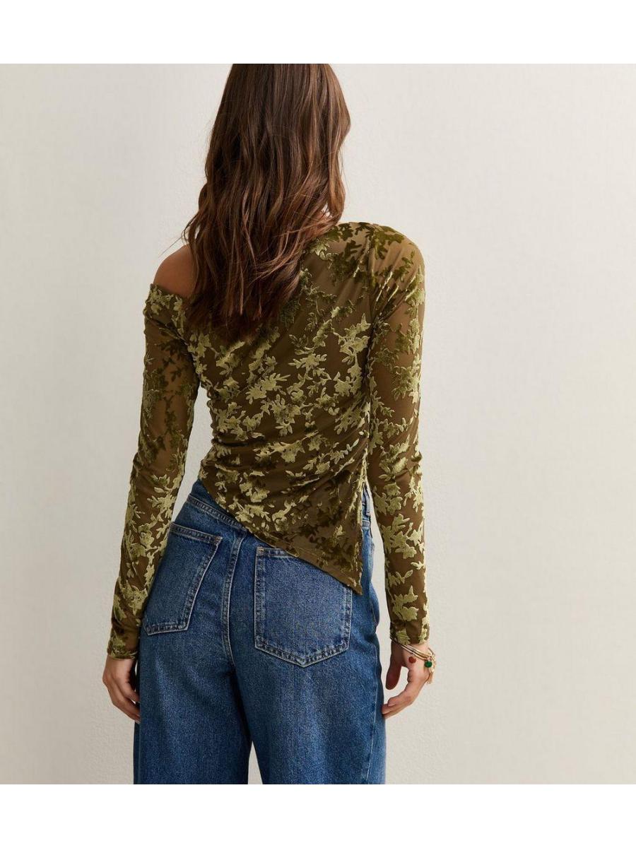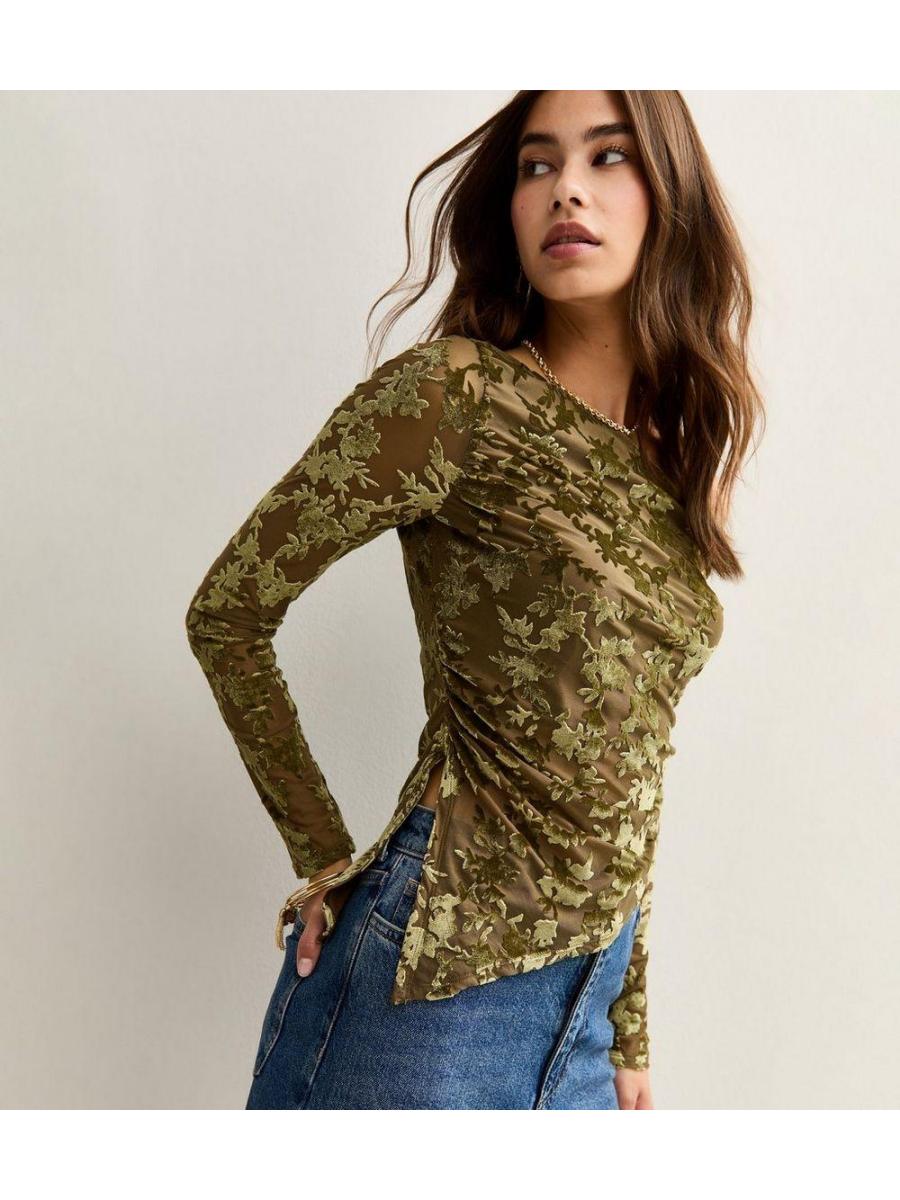 Green Velvet Devore Long Sleeve Top