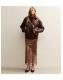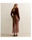 Brown Satin Lace Trim Asymmetric Bias Cut Maxi Skirt