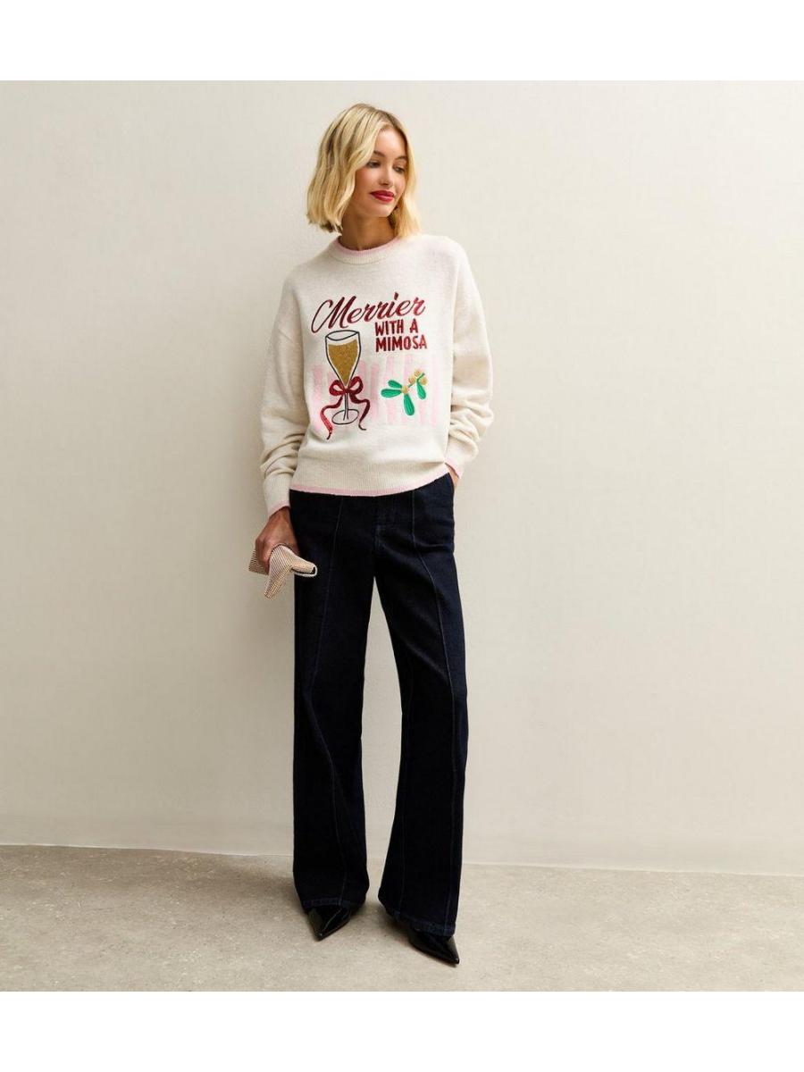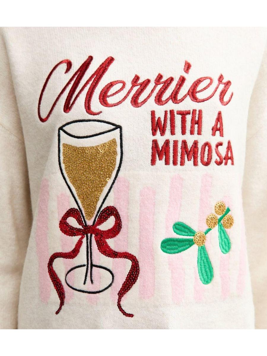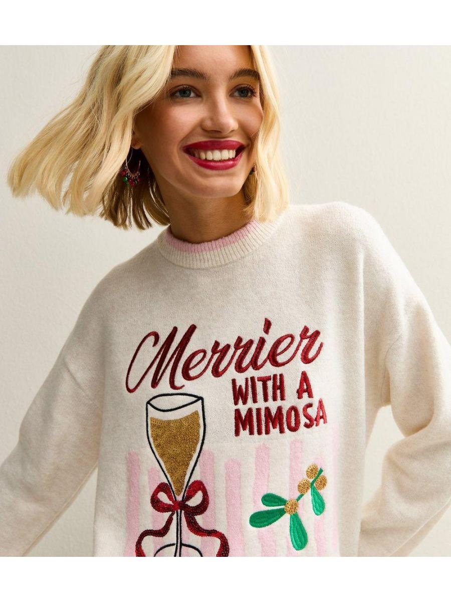 Cream Embroidered Merry Mimosa Christmas Jumper