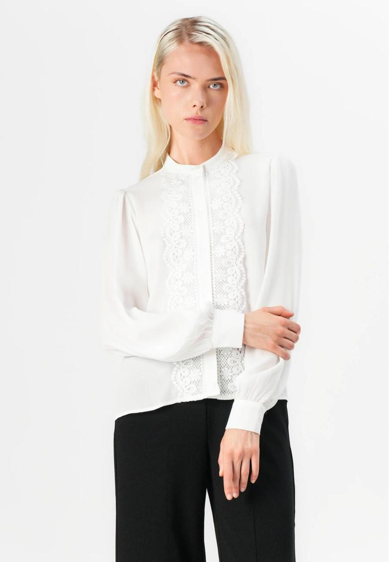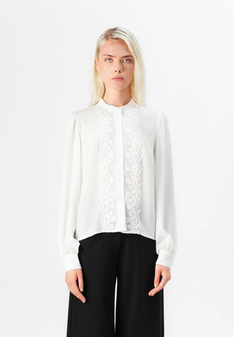 Collar: Mandarin collarFastening: ButtonSheer: Semi-sheerPattern: PlainDetails: Crochet detailing