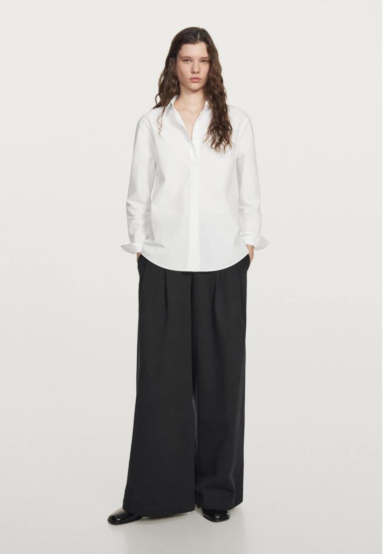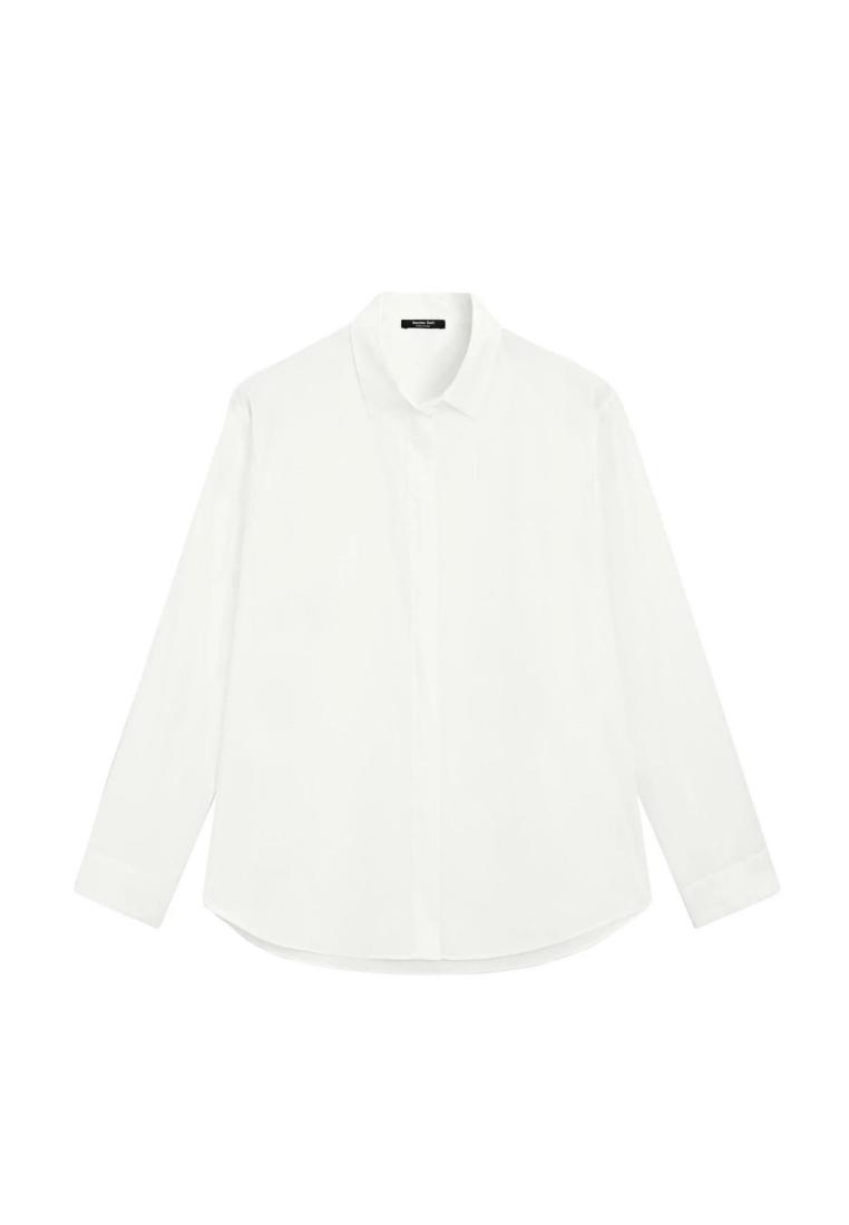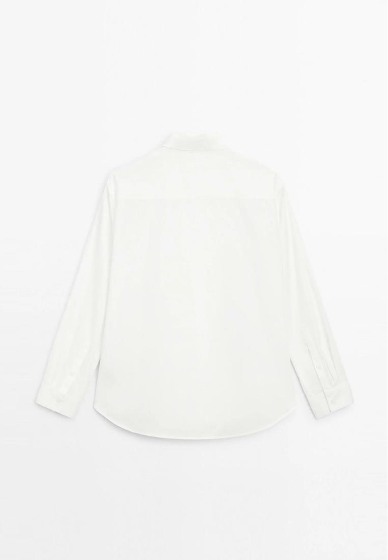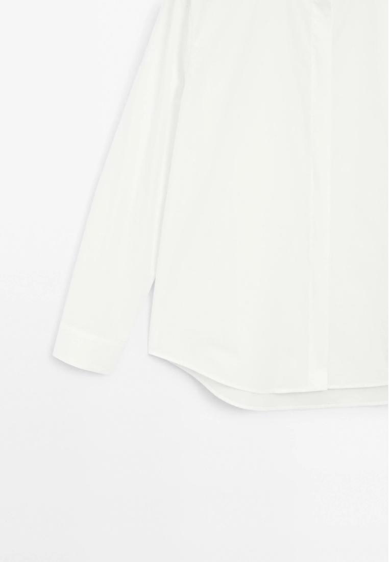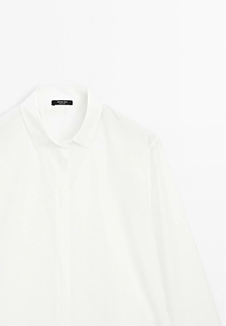 Shirt made of 100% cotton fabric. Shirt collar. Long sleeves. Front button fastening concealed by a placket.Collar: Shirt collarFastening: ButtonPattern: PlainDetails: Covered fastener