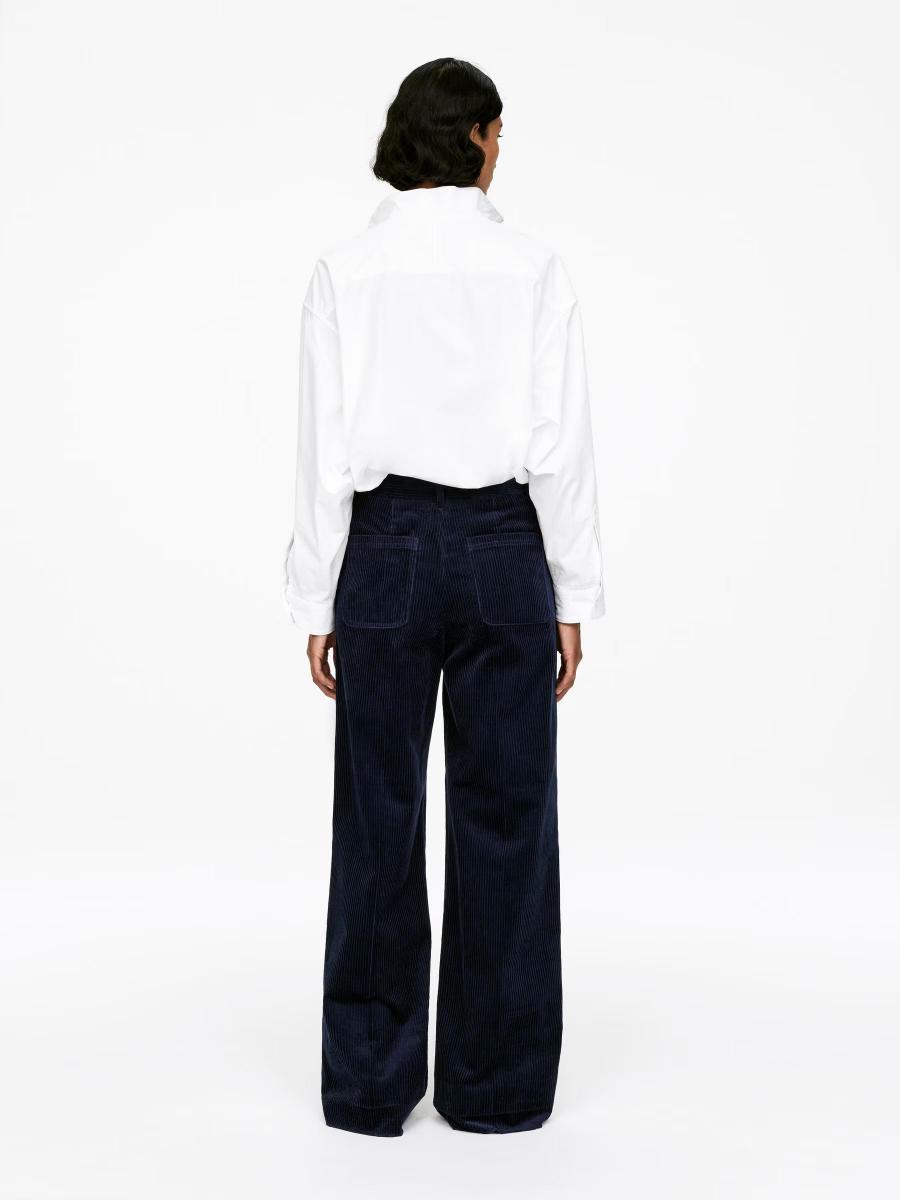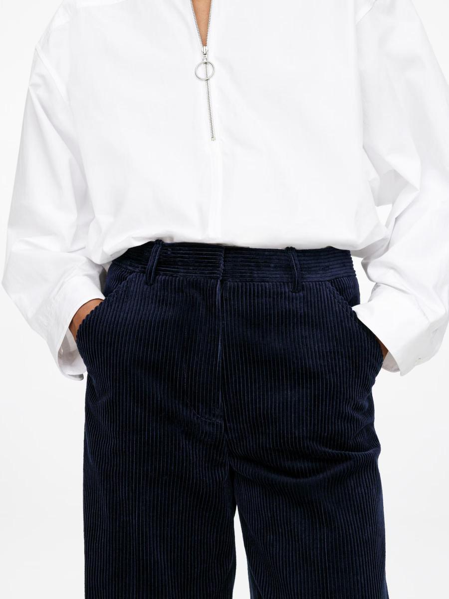 Tailored corduroy trousers with press creases at front and back. Detailed with slanted side pockets and patch pockets at back. Wide legs and hook-and-eye closure.ARKET/Women's clothes/Women's trousers