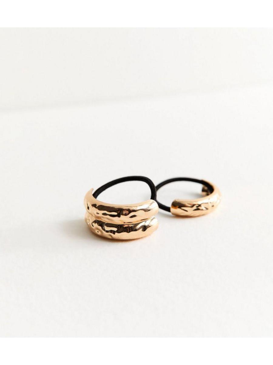 Pack Of 2 Gold Tone Hammered Hair Ties