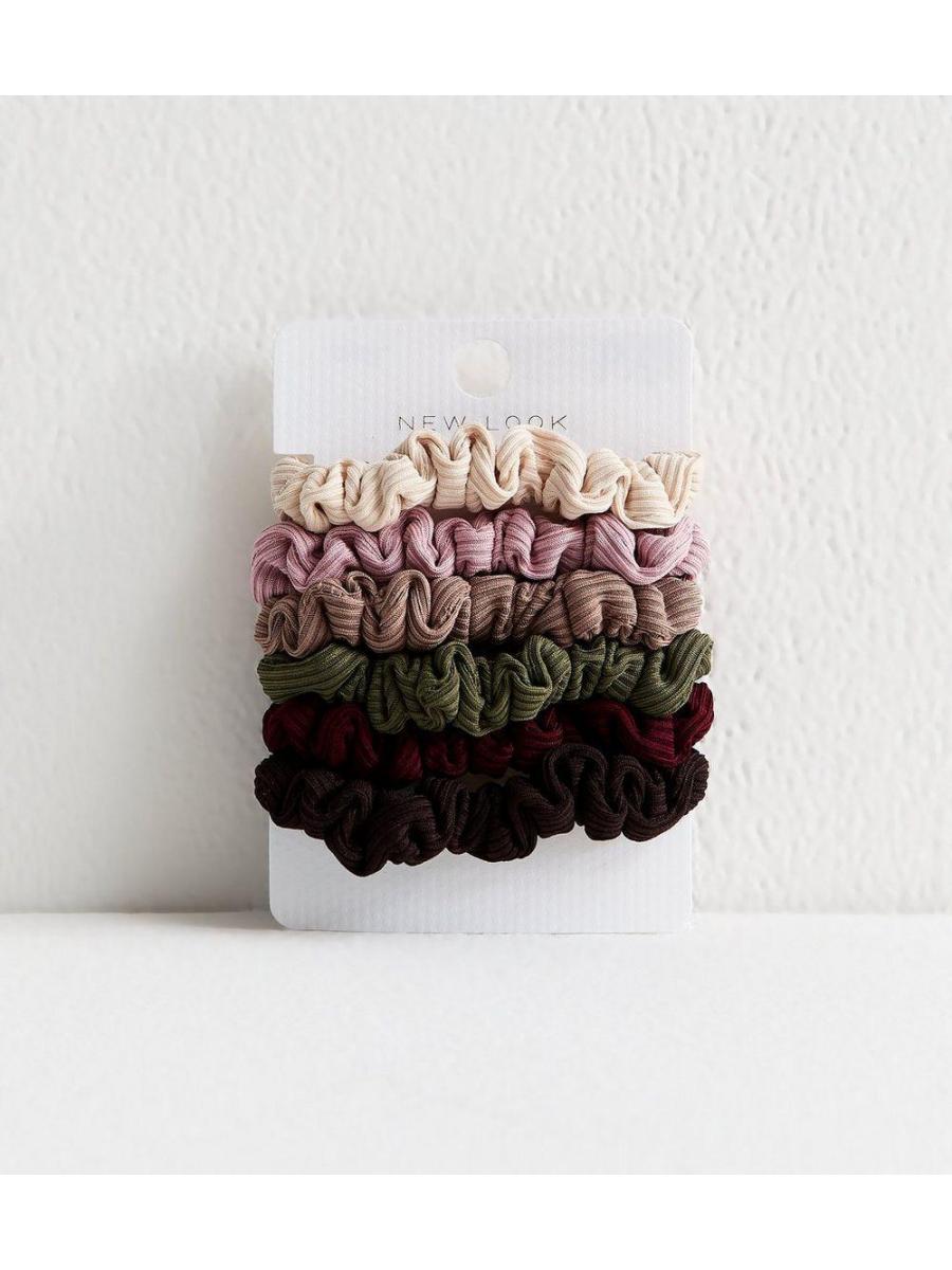 Pack of 6 Multi Colour Ribbed Scrunchies