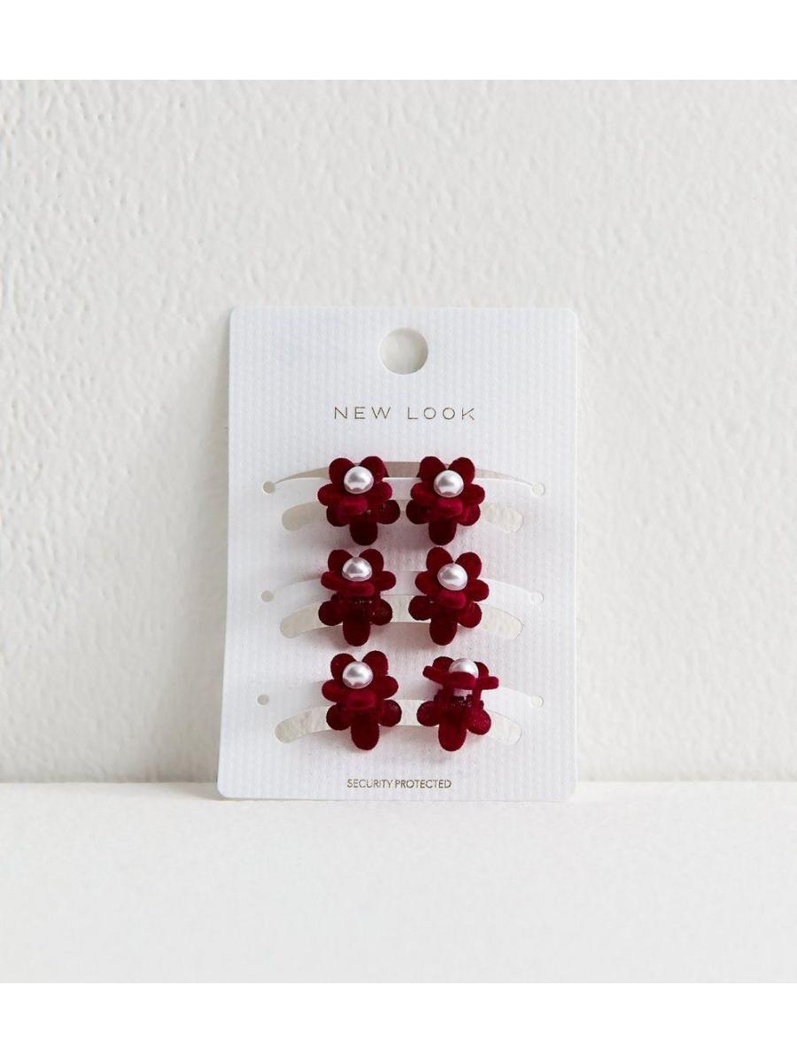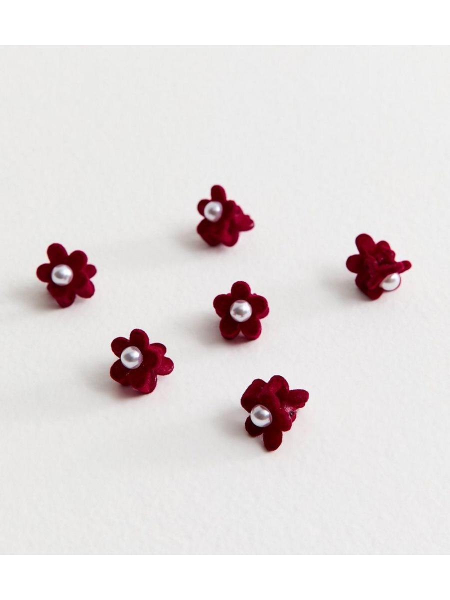 Pack of 6 Burgundy Mini Faux Pearl Embellished Floral Hair Clips