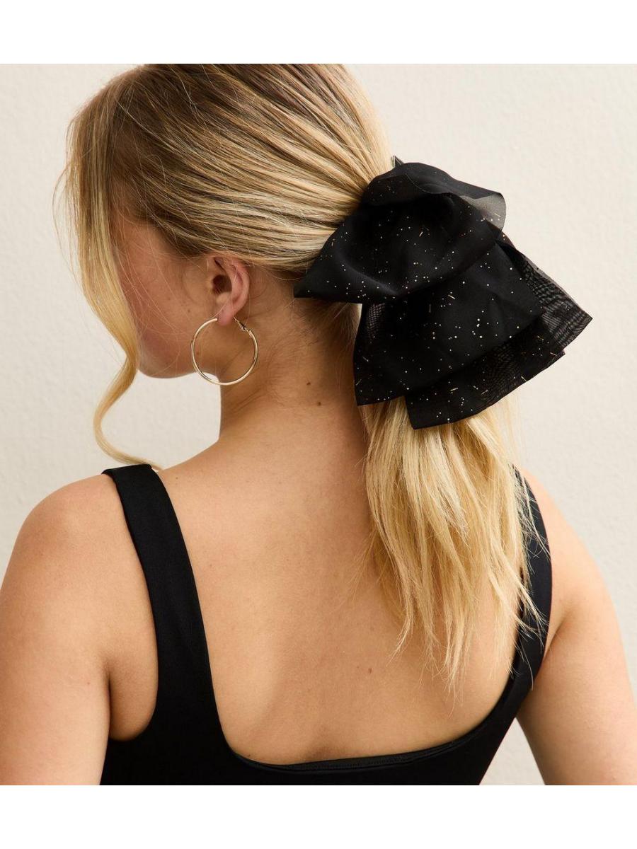 Black Glitter Bow Hair Clip