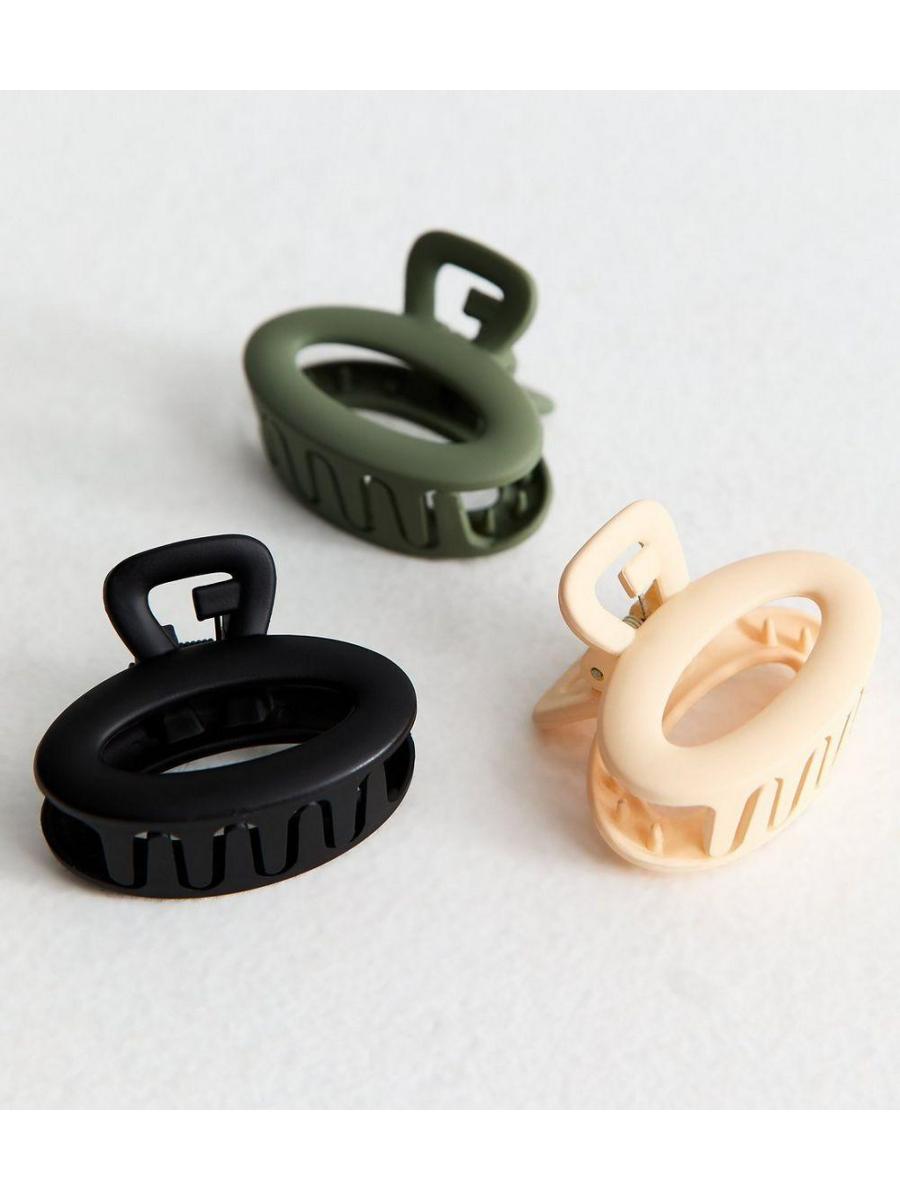 Pack Of 3 Multicolour Mini Matte Oval Bulldog Hair Clips