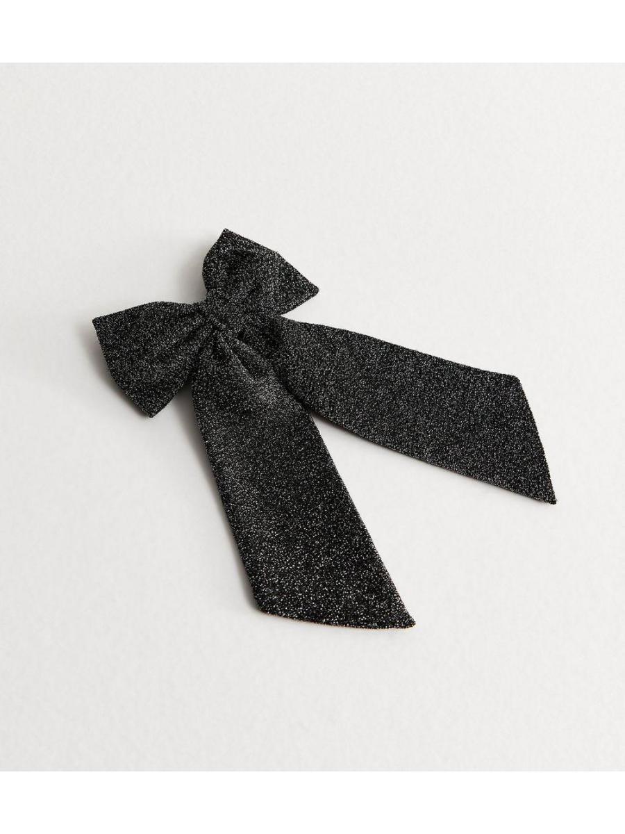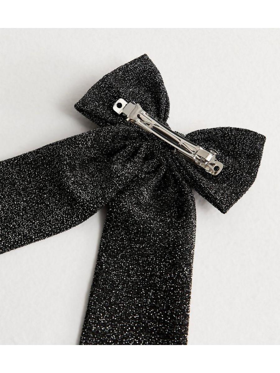 Black Sparkle Bow Barette Clip