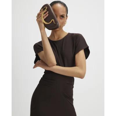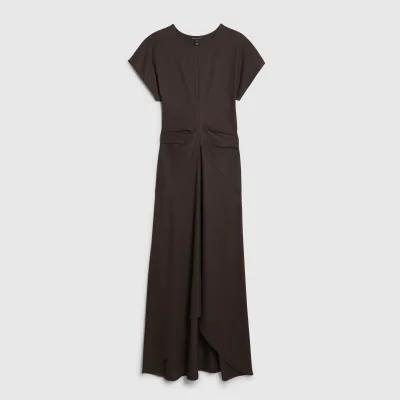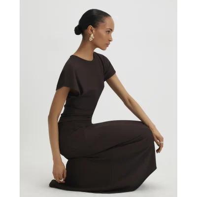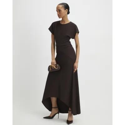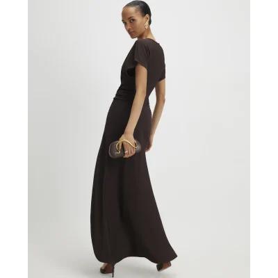 Brown Short Sleeve Cinched Waist Maxi Dress