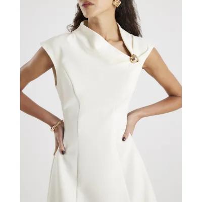 Cream Sleeveless Drape Mini Dress