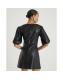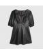 Black Faux Leather Puff Sleeve Mini Dress