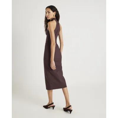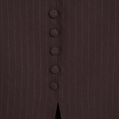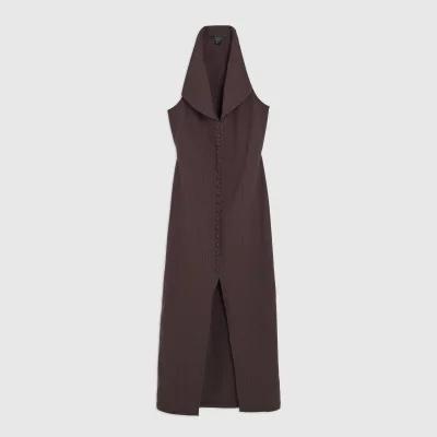 Brown Pinstripe Halter neck Button Midi Dress