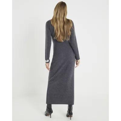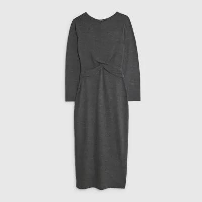 Grey Long Sleeve Cosy Twist Front Midi Dress