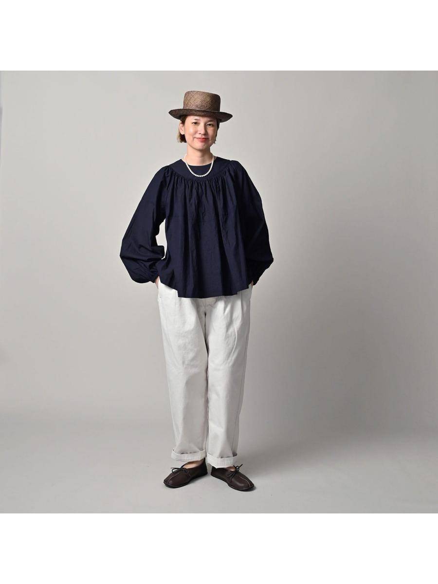 スーピマバチストのタックギャザーブラウス(インディゴ)
