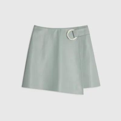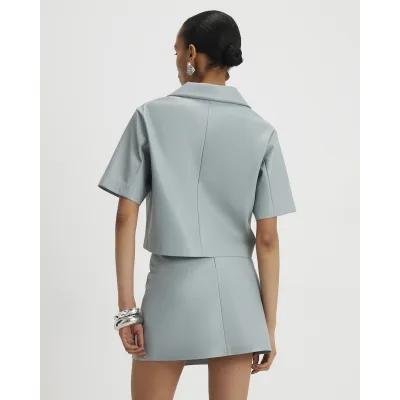 Blue Faux Leather Eyelet Mini Wrap Skirt