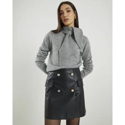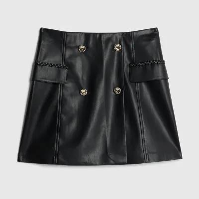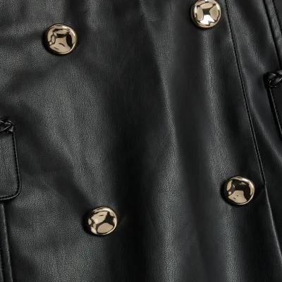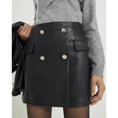 Black Faux Leather Wrap Mini Skirt