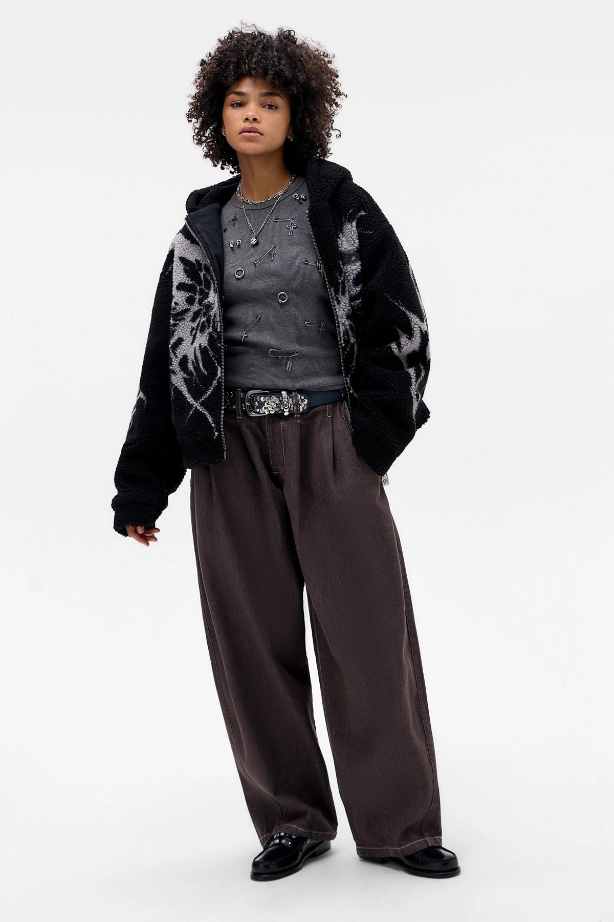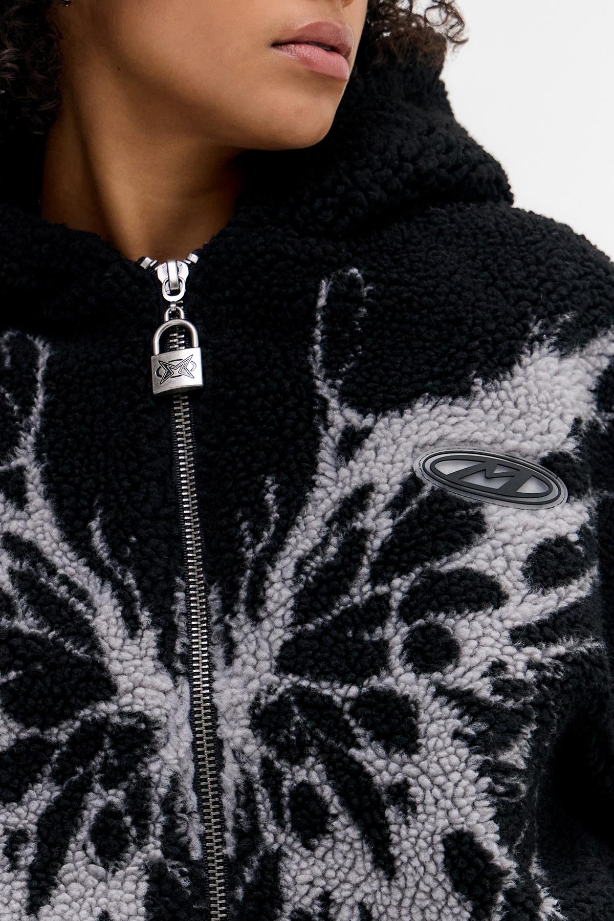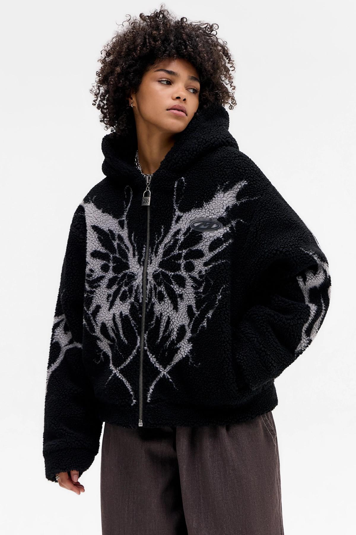 Minga London Black Butterfly Borg Jacket