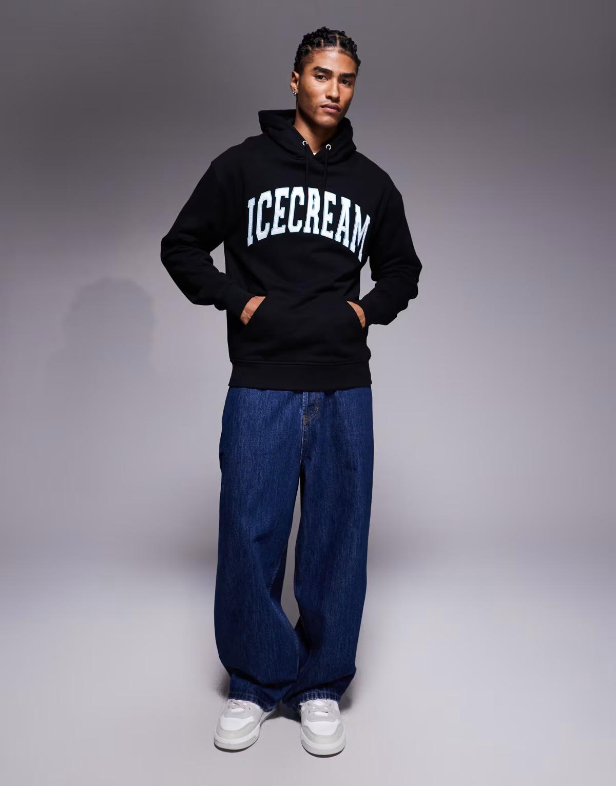 Machine wash according to instructions on care labelMain: 100% Cotton.Get the scoop on ICECREAM – the streetwear brand serving up bold graphics and skate-ready style with a premium edge. Founded by Pharrell Williams and NIGO, the pair use the label to support skaters with serious skills but limited opportunities. Delivering graphic-led designs, discover printed T-shirts, sweatshirts, varsity-style jackets and skate-inspired trousers influenced by fashion, music, and art. Scroll our ICECREAM at ASOS edit and level up your everyday rotation.