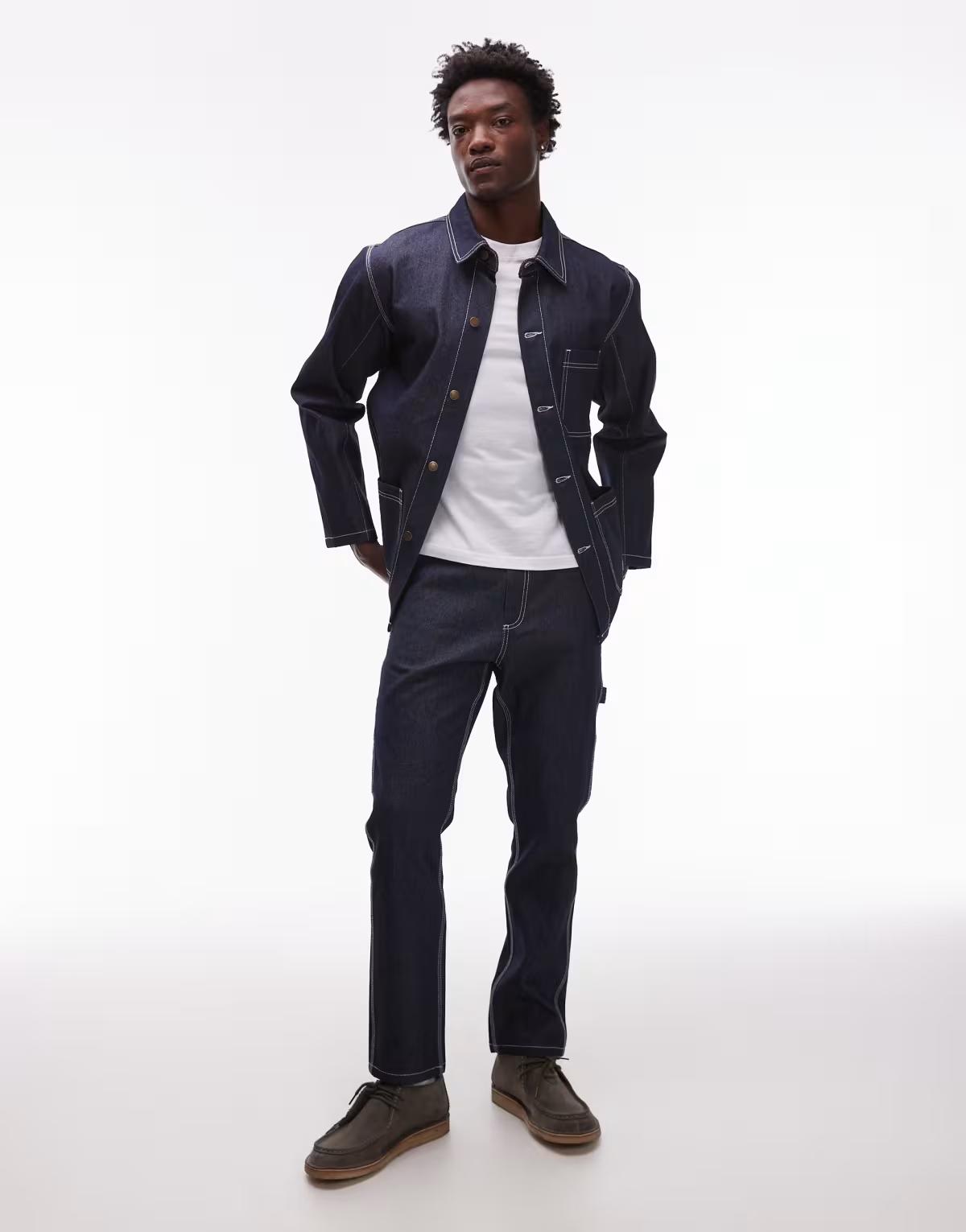 Regular cleaning with a certified cleaning product will restore the look of this item.Non-stretch denim: dark blue wash