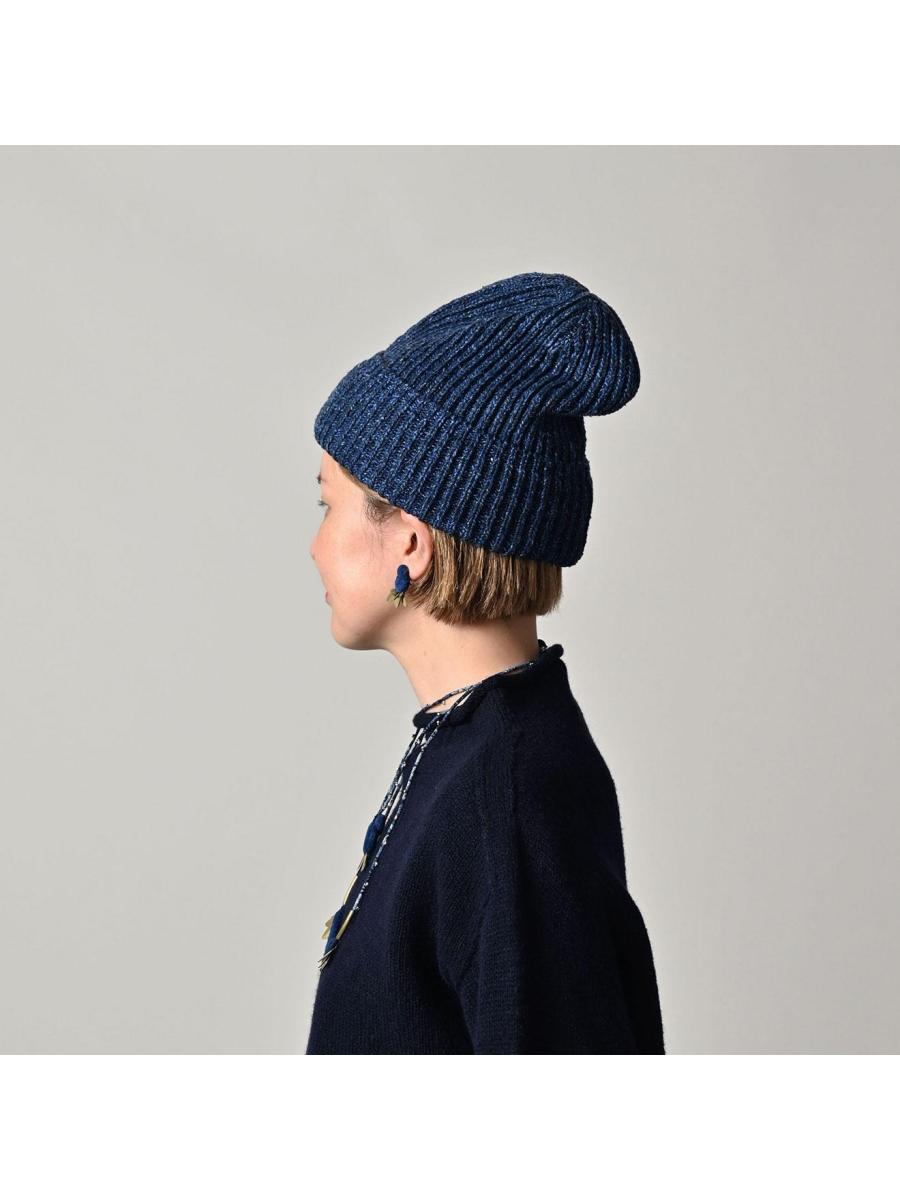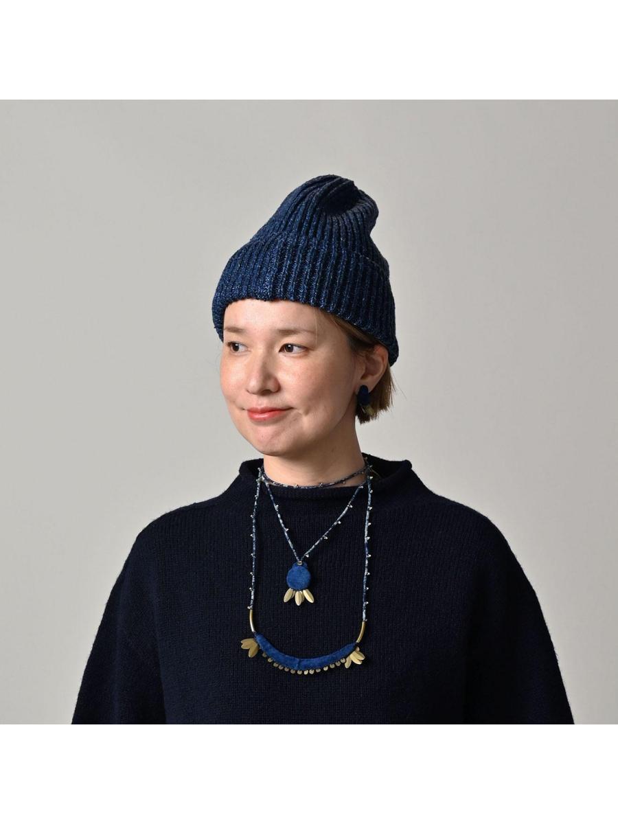 インディゴ玉手箱のニットキャップ