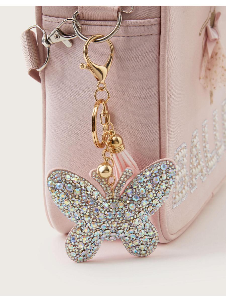 Flitter, flutter! Embellished with iridescent rhinestones for endless sparkle, this butterfly charm is a dazzling addition to their school bag or keys. Attaches with a key ring or dog clip fastening.