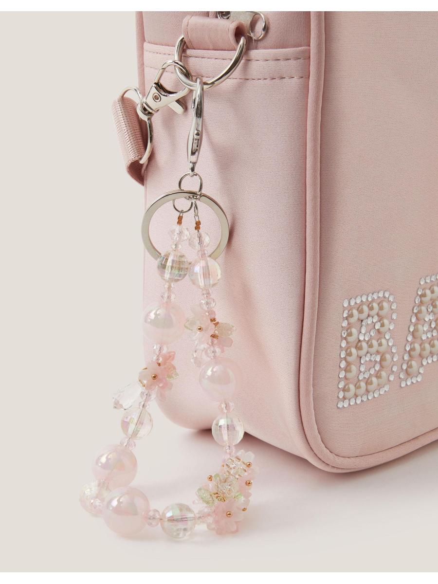 Charmed, I'm sure. Strung with chunky beads and flower embellishments in pretty pink colours, this bag charm makes a cute addition to their backpack or keys. Attaches with the key ring or dog clip fastening.