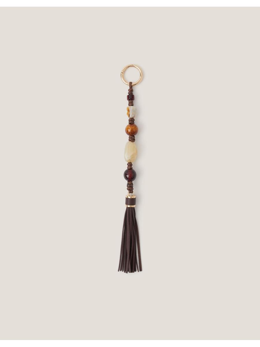 Description Make your bag yours. Strung with marbled beads in a mix of earthy, autumnal colours, this bag charm is finished with a swishy tassel and gold-tone clip fastening. A little bit chic, a little bit boho, it's a must-have addition to your tote. Details Fabric & Details Outer: Polyester 10% , Polyurethane (PU) 10% , Resin 70% , Zinc 10% L 28 CM Wipe clean Plain Weight: 20.0 ID: 1000916286b-details__content-item"> Outer: Polyester 10% , Polyurethane (PU) 10% , Resin 70% , Zinc 10%