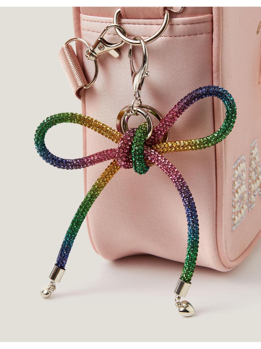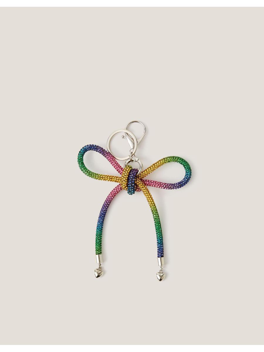 Sparkle to the max. Adding endless colour and sparkle to their bags, this charm features a bedazzled bow, covered with rhinestones in all the colours of the rainbow. Fastens with a keyring or dog clip fastening.