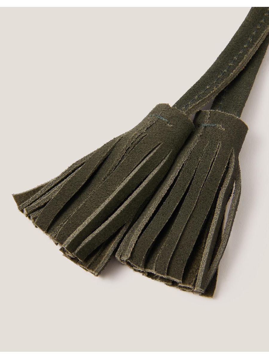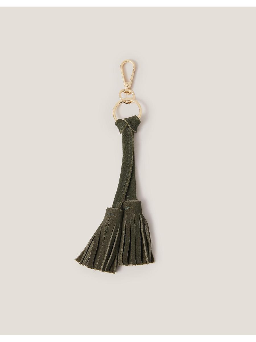 Description On the fringe. Crafted in the fabric of the season, this suede bag charm showcases two swishy tassels in a luxe olive green colour. Finished with gold-tone keyring and clip fastenings. Details Fabric & Details Outer: Metal 40% , Suede 60% H 12 cm x W 2 cm wipe clean Weight: 40.0 ID: 1000779262b-details__content-item"> Outer: Metal 40% , Suede 60%