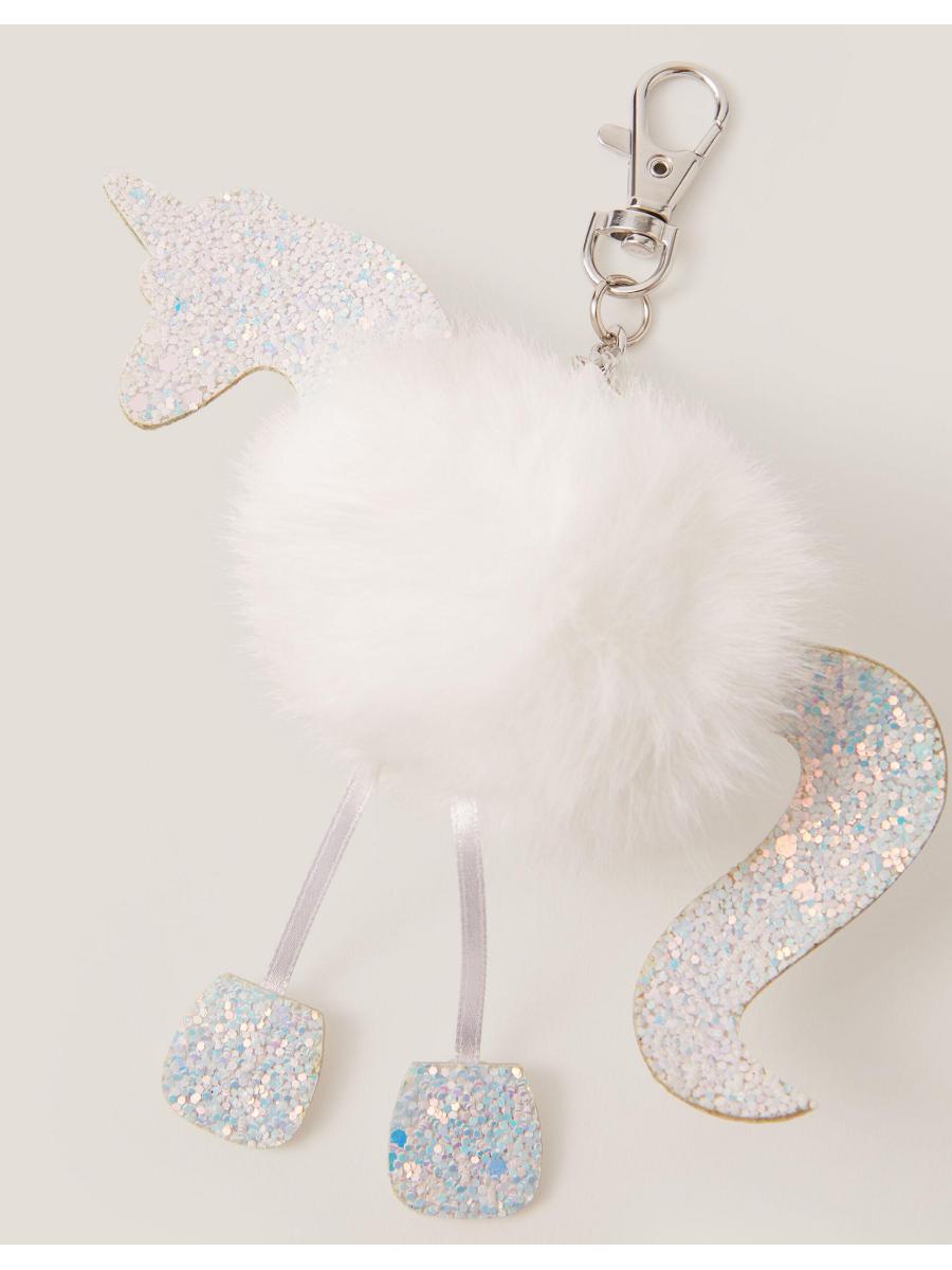 Never say neigh to fun accessories! A magical addition to their school bag, this charm is shaped like a unicorn with a fluffy pom-pom body and glittery finish. Attaches with a silver-tone clip fastening.