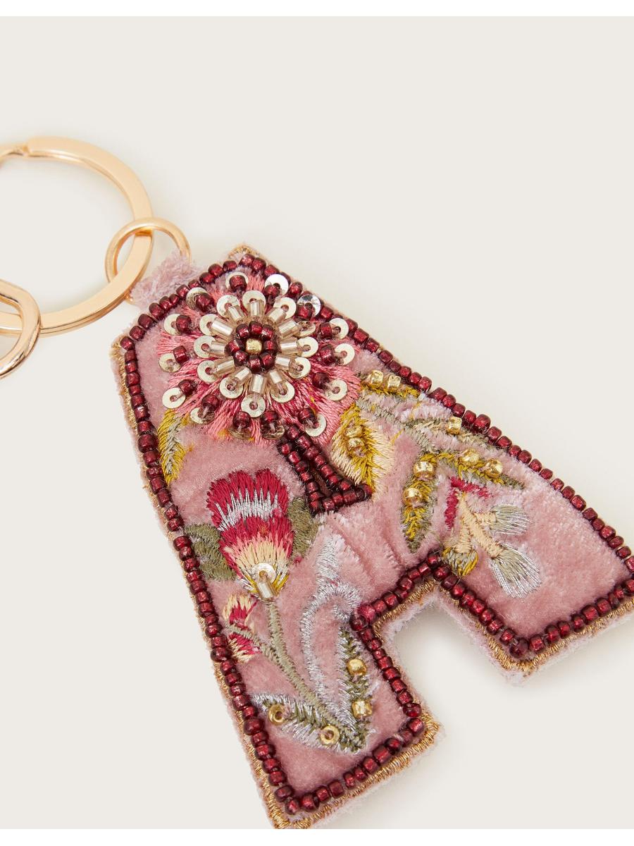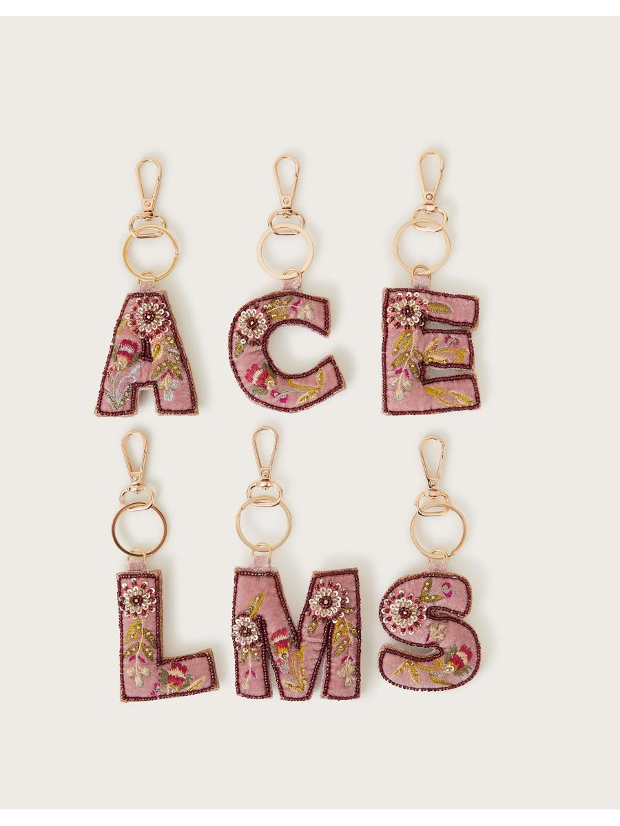 Personalised perfection. Embellished with sparkling florals on a soft, velvet backdrop, this keyring comes in every letter of the alphabet — perfect for gifting to yourself or loved ones! Fastens with a gold-tone dog clip. Pink
