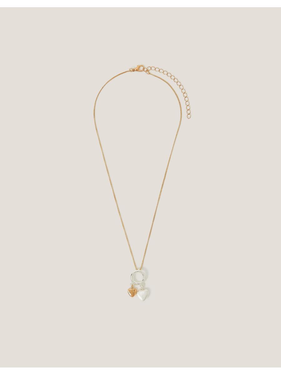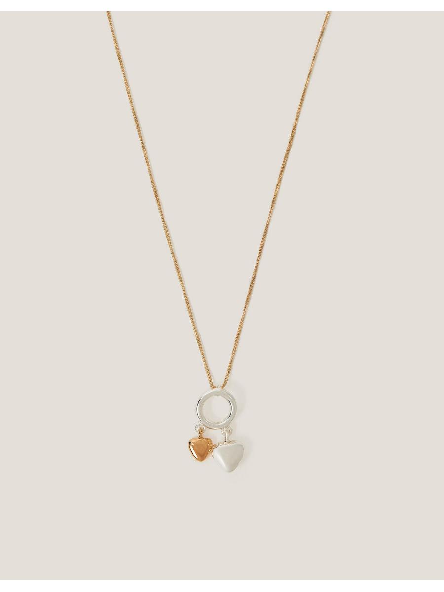 Description So charming. Dipped in silver and gold-tone finishes for a mixed metal look, this necklace is designed with two heart charms dangling from the round pendant. A timeless pick for your own jewellery box, it also makes a great gift for anyone you love. Details Fabric & Details Outer: Brass 5% , Iron 50% , Zinc 45% H 1 cm x W 1 cm x L 22 CM Wipe clean Plain Weight: 15.0 ID: 1000980936b-details__content-item"> Outer: Brass 5% , Iron 50% , Zinc 45%