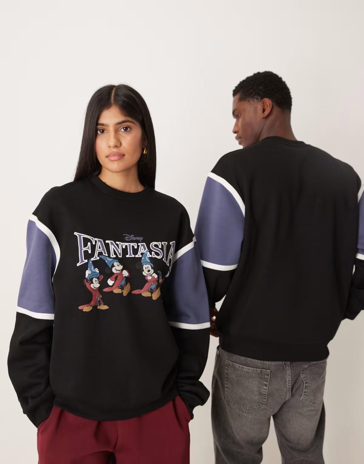 ASOS DESIGN Disney Fantasia unisex relaxed crew with Mickey Mouse prints in black
