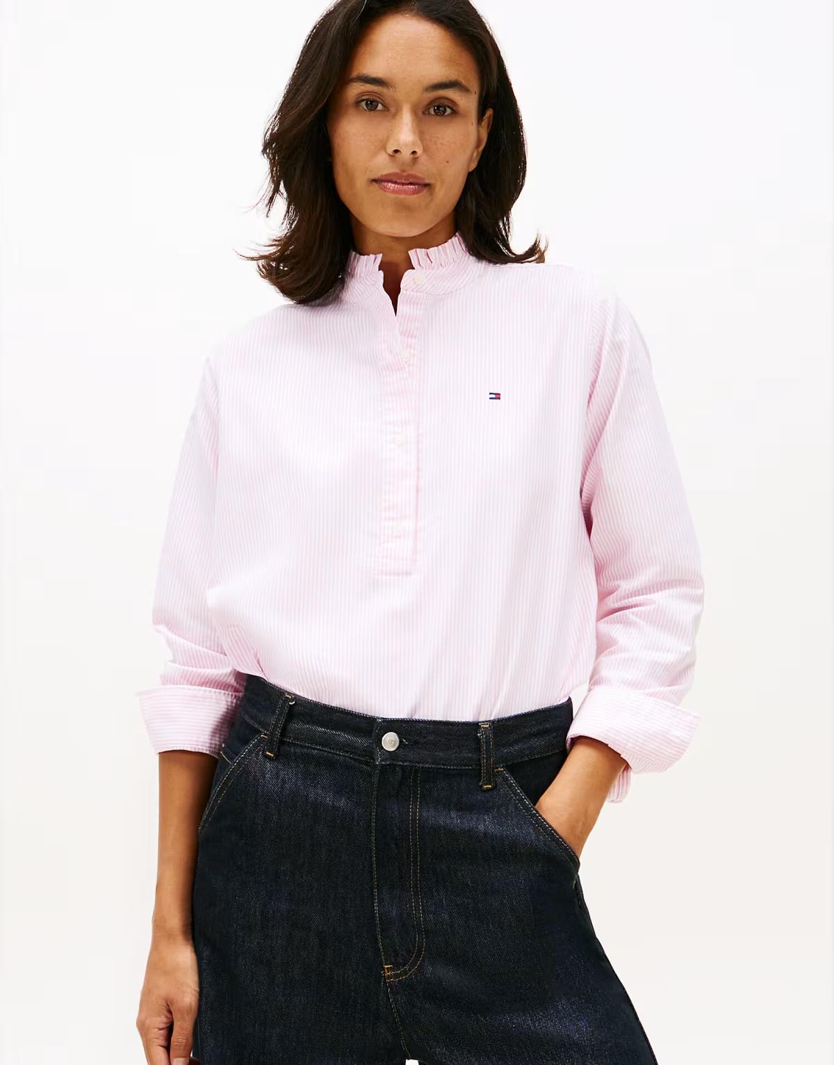 Tommy Hilfiger Relaxed fit ruffle collar oxford shirt in light pink