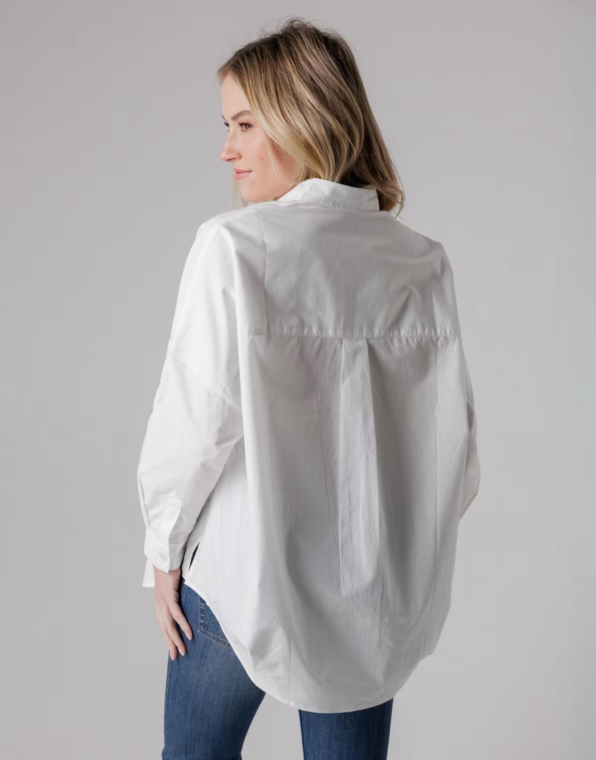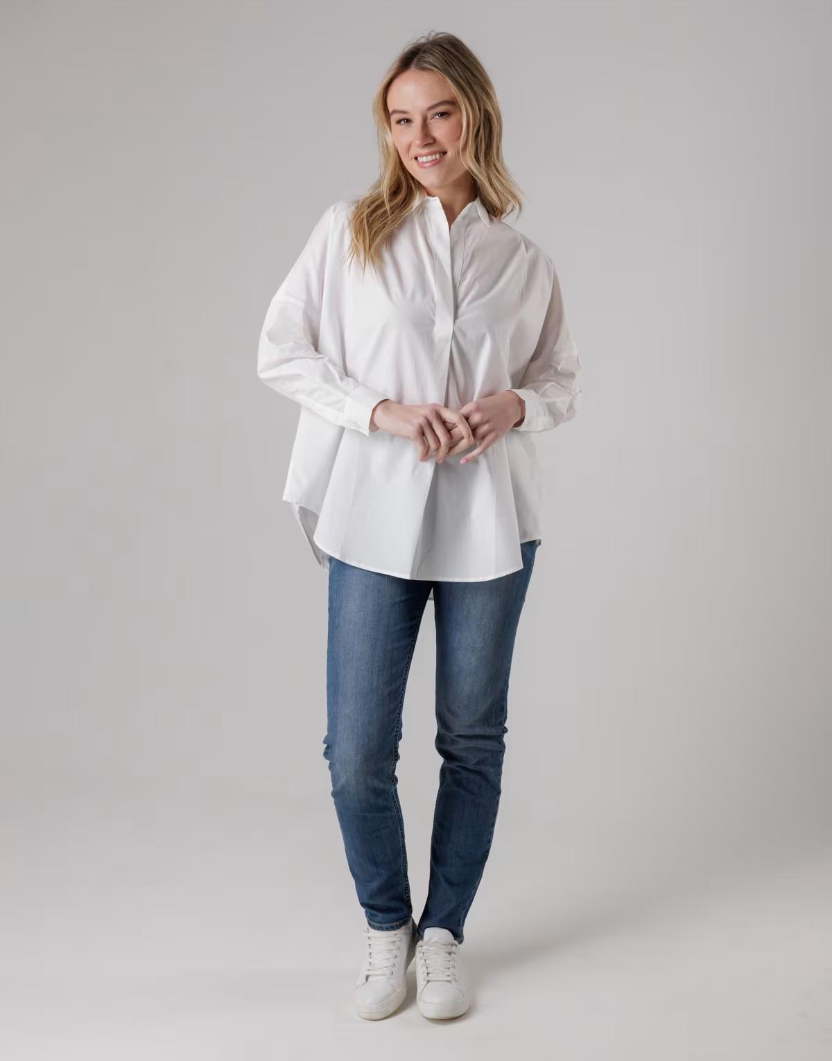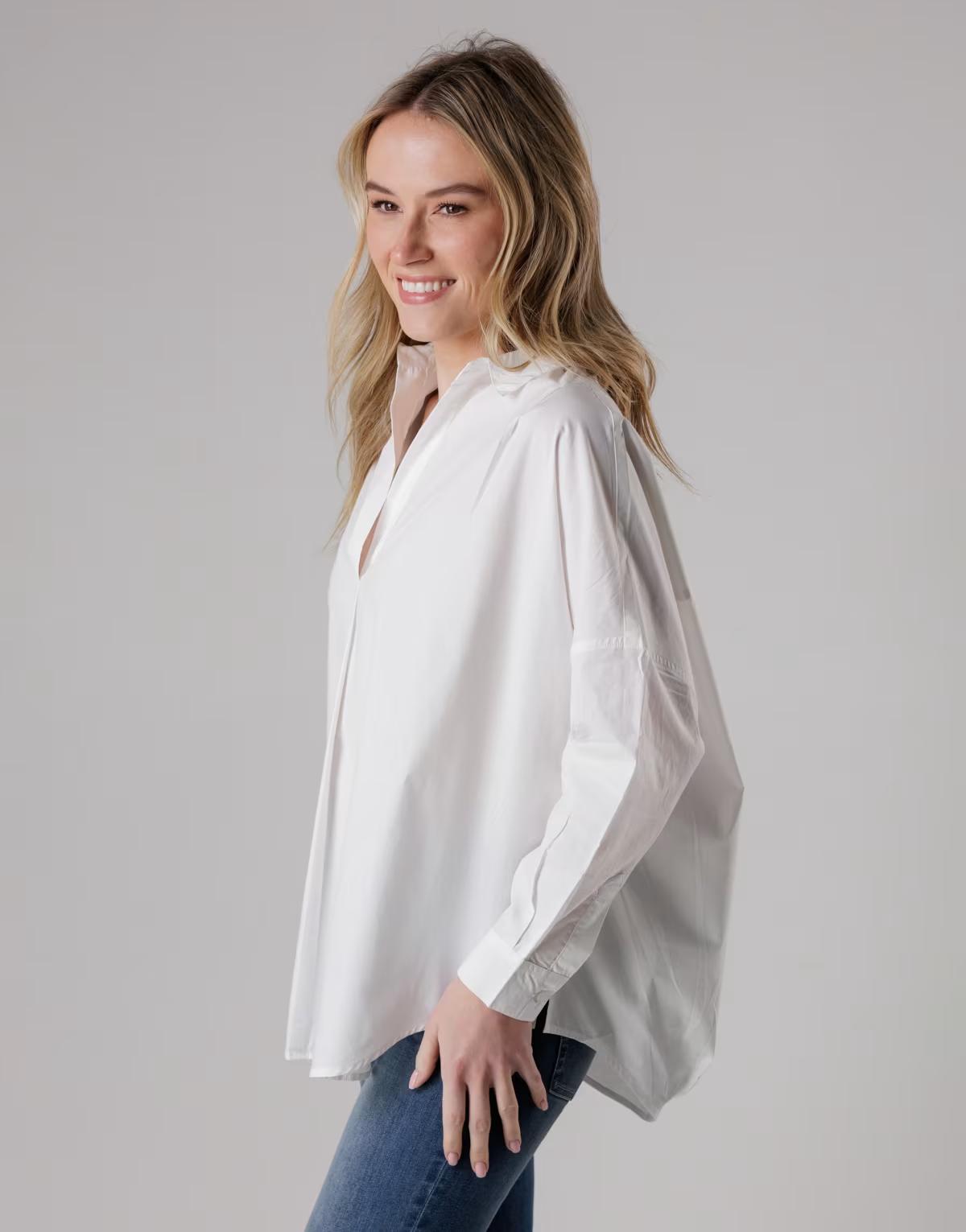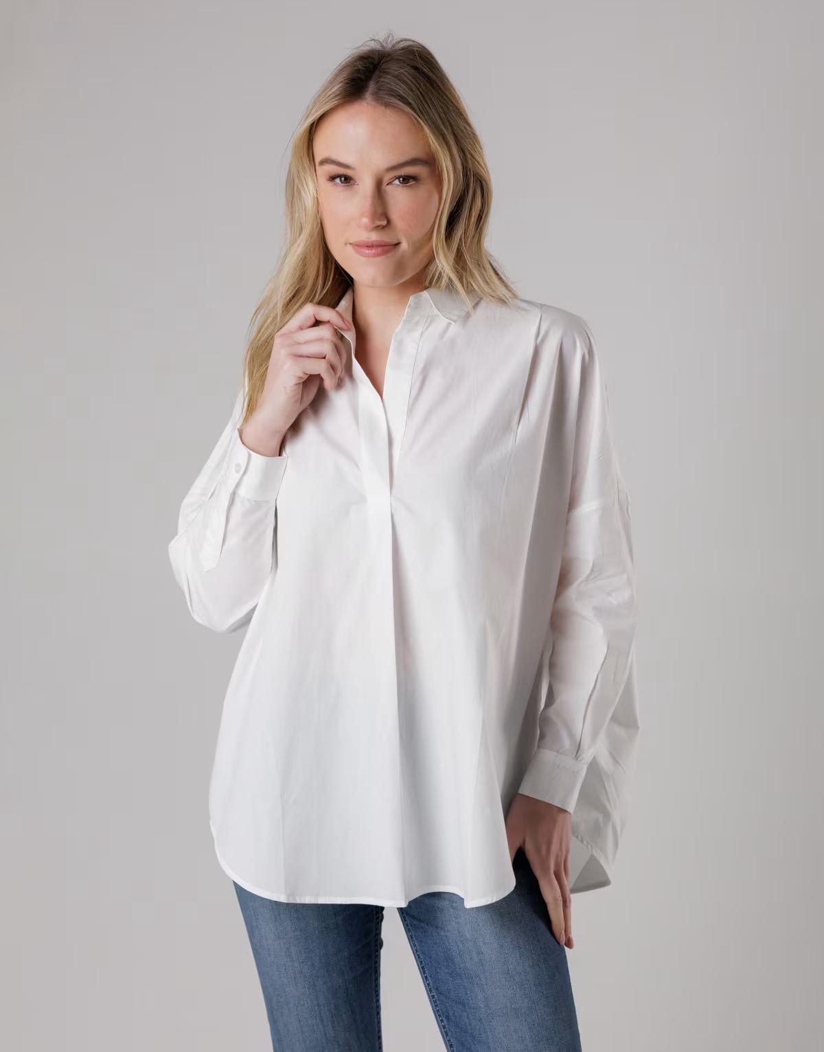French Connection Cotton long sleeve poplin popover high-low hem shirt in white