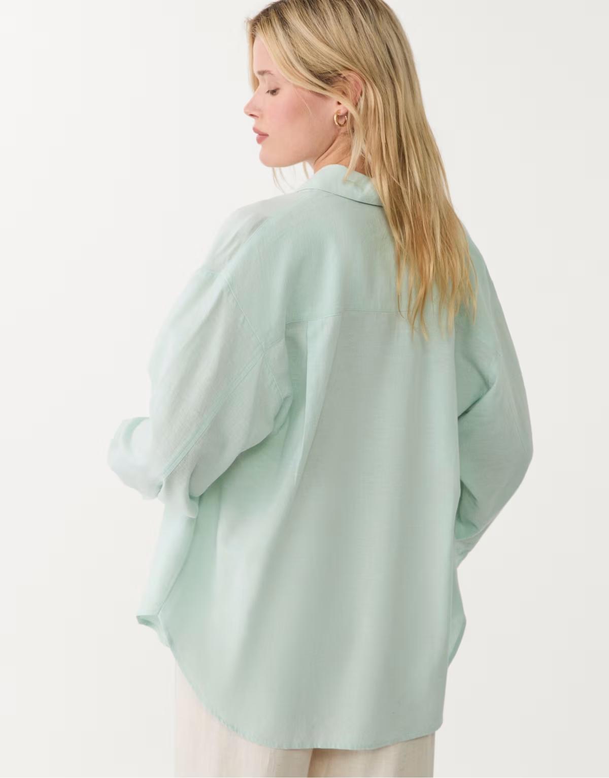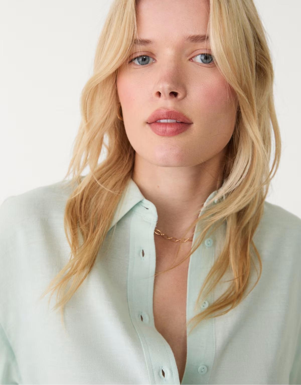 Stradivarius Linen blend shirt in aquamarine