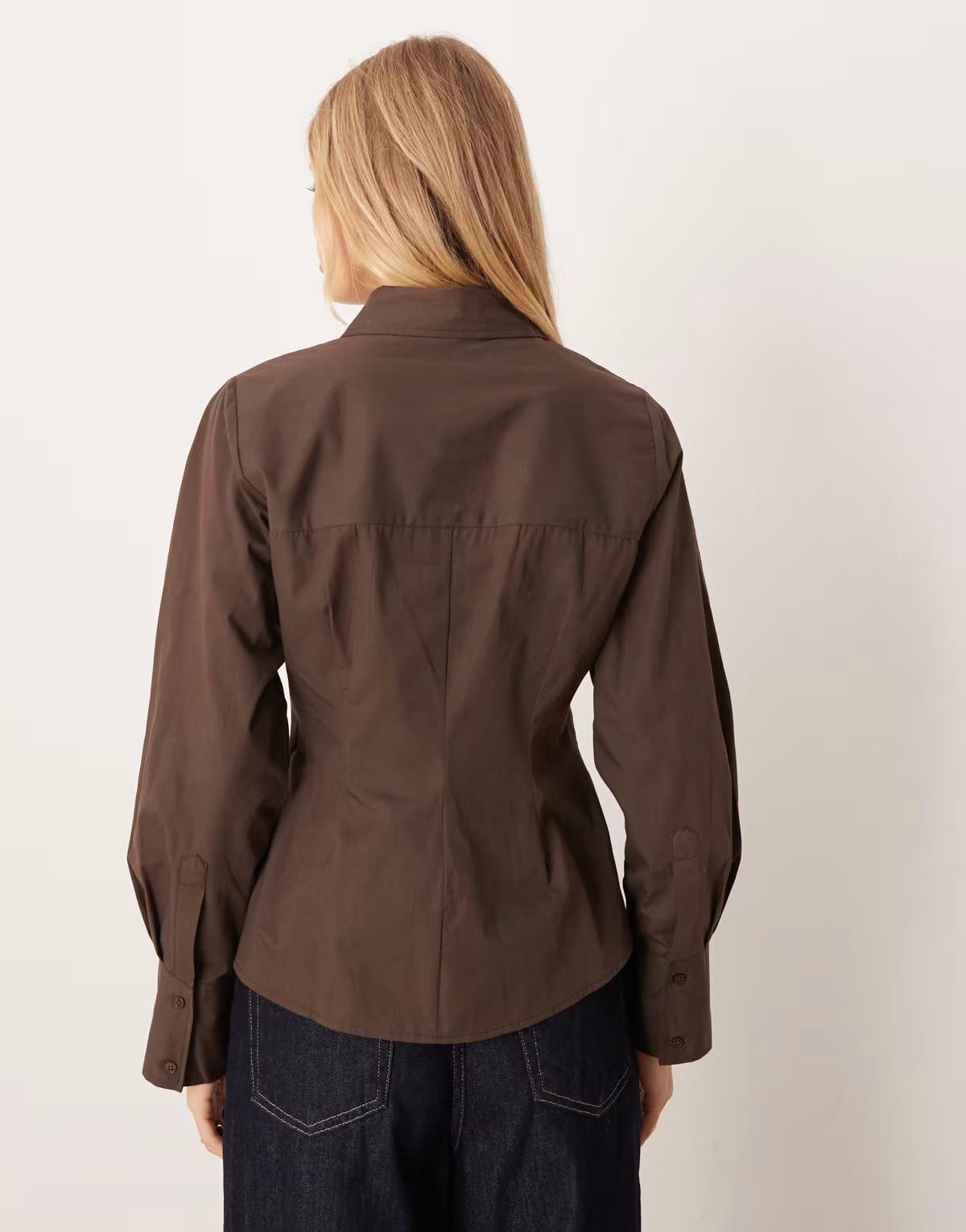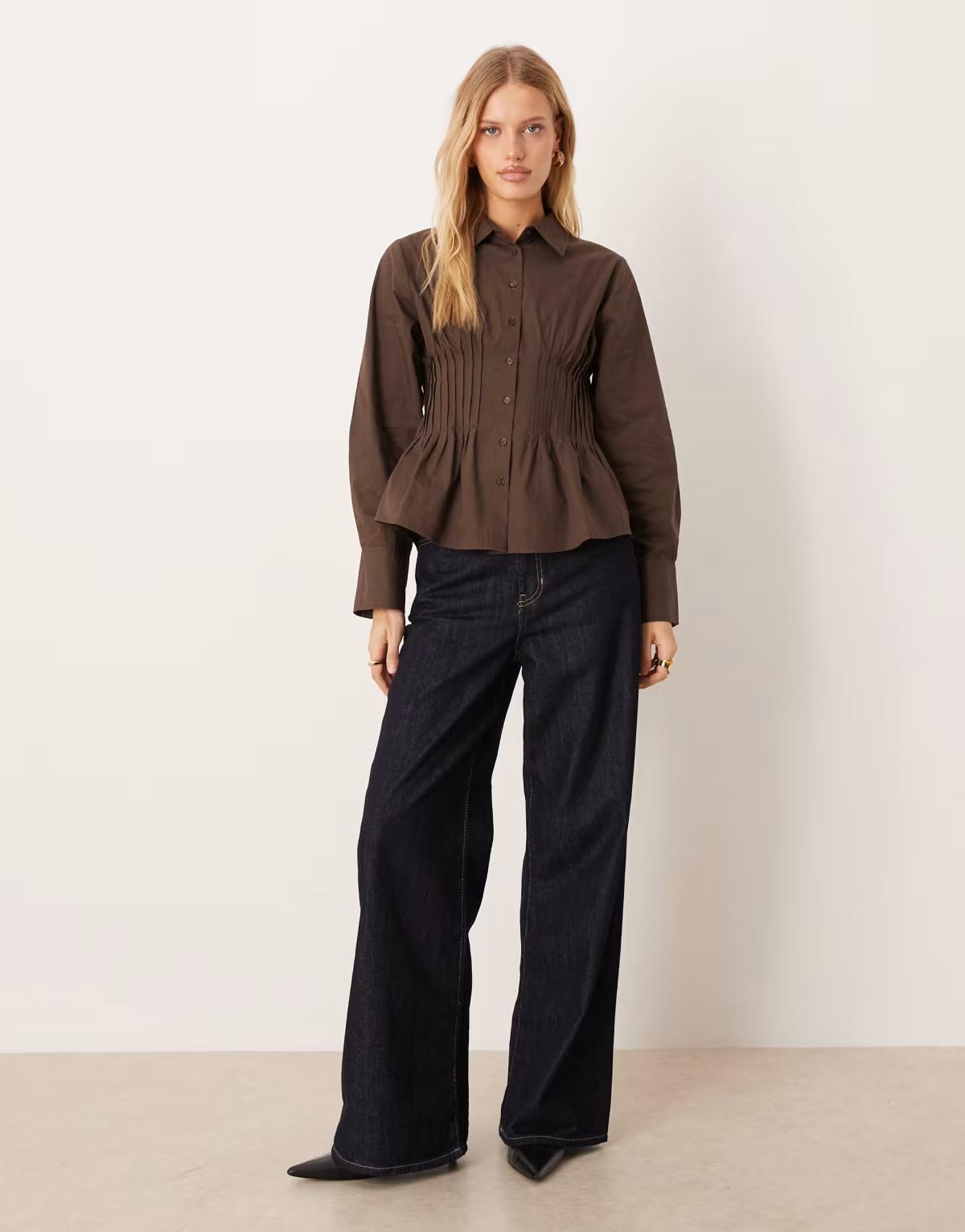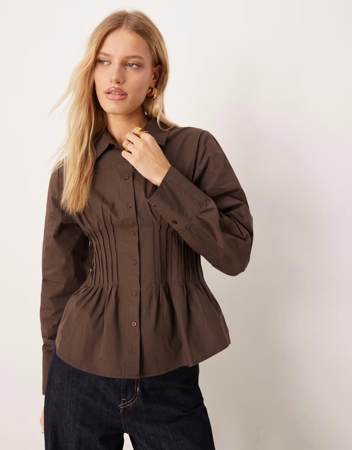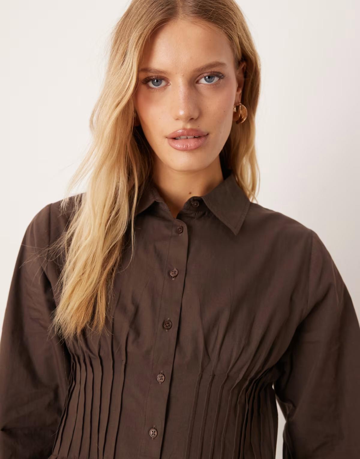 ASOS DESIGN pintuck cinch waist shirt in chocolate
