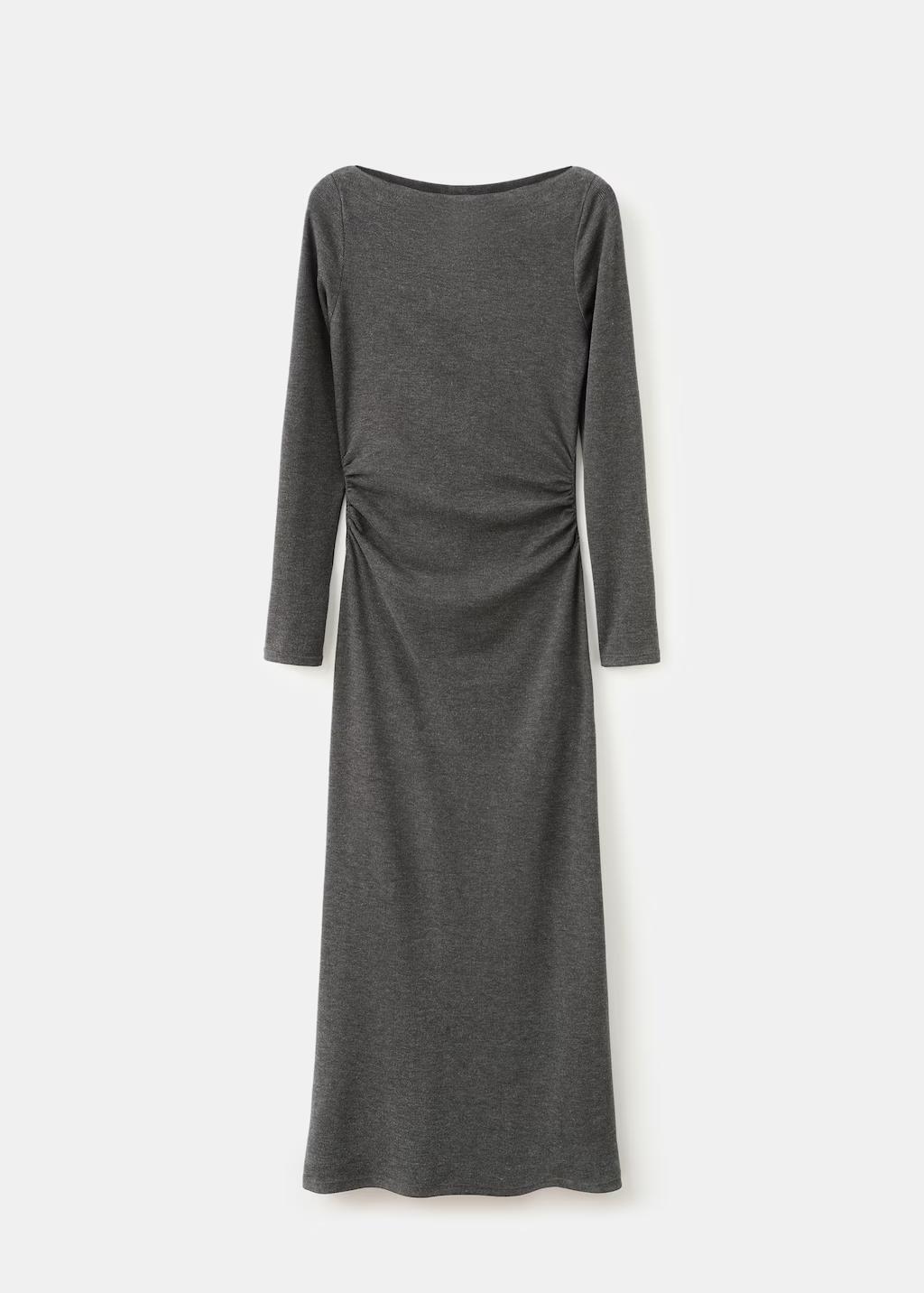 Diseño midi. Diseño entallado. Cuello redondo. Manga larga. Fruncido lateral. Sin cierre. Disponible Plus