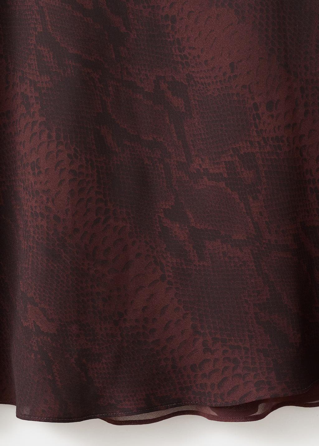 Diseño midi. Diseño evasé. Estampado de serpiente. Cuello redondo. Manga larga. Sin cierre. Forro interior